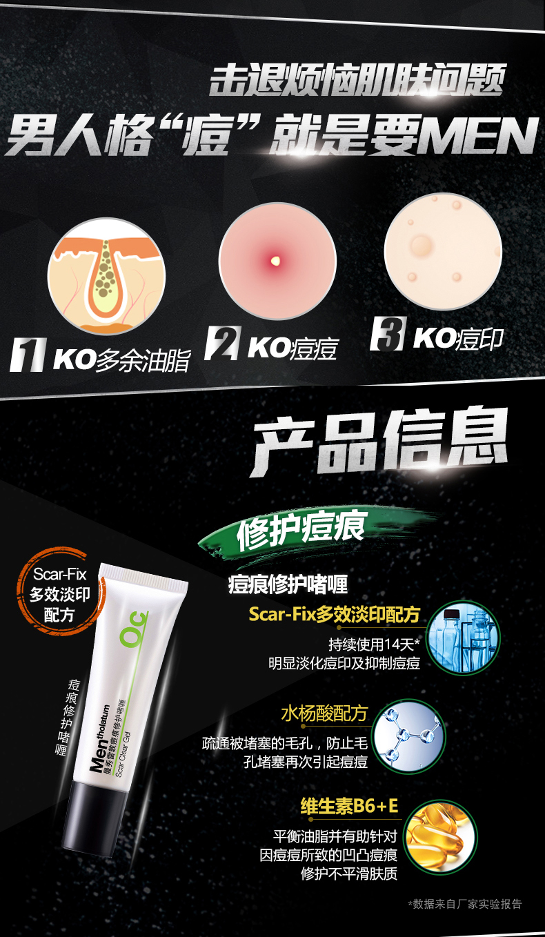 曼秀雷敦男士痘痕修护啫喱淡化痘印收细毛孔护肤品男淡化痘印疤痕JPY带授权招加盟代理