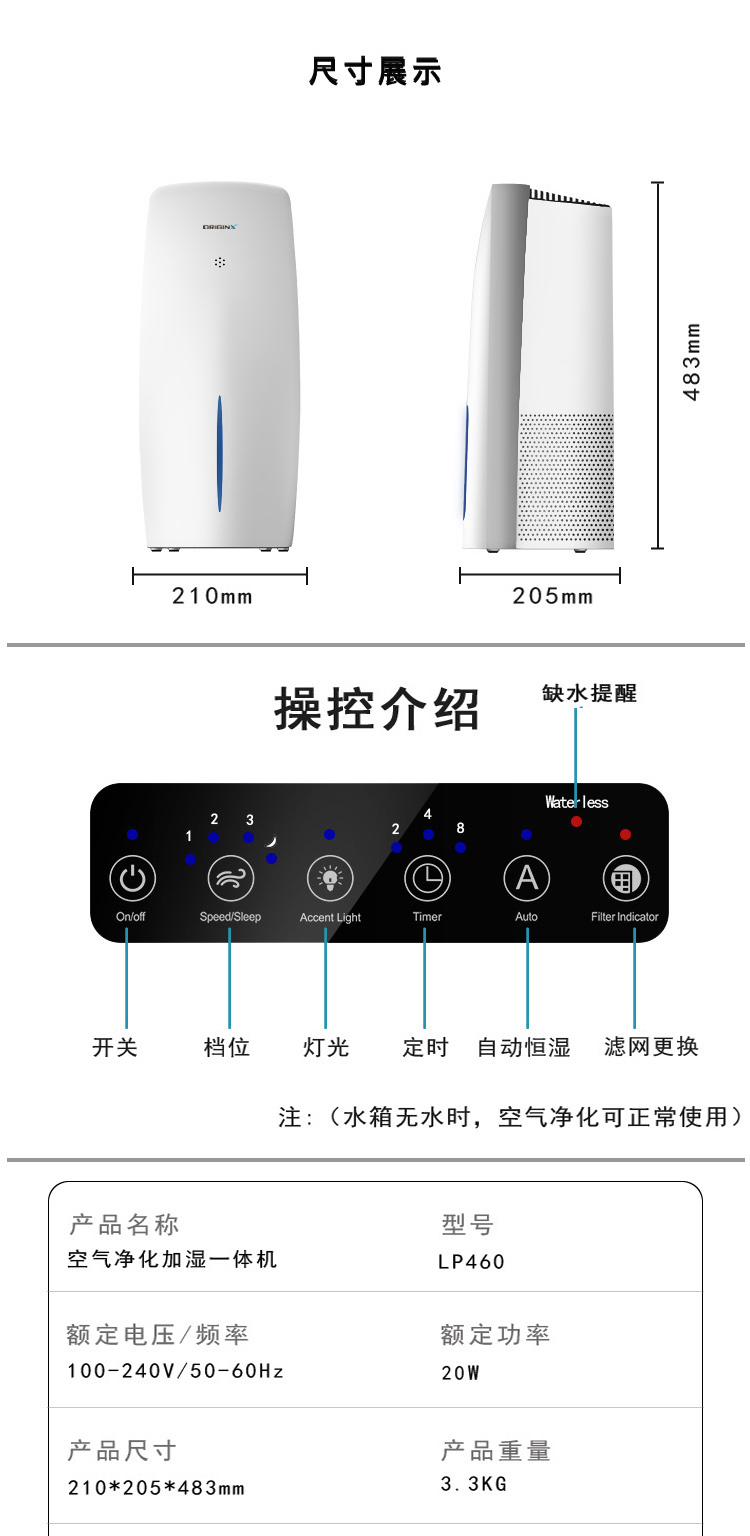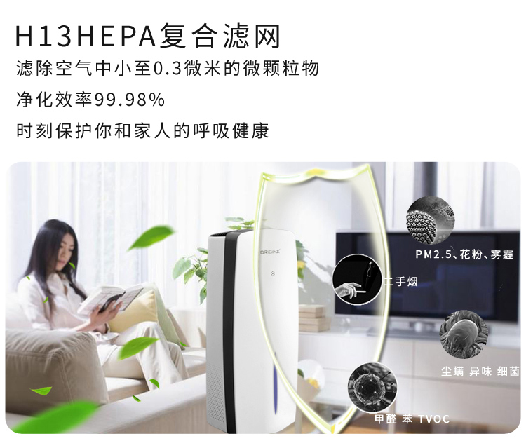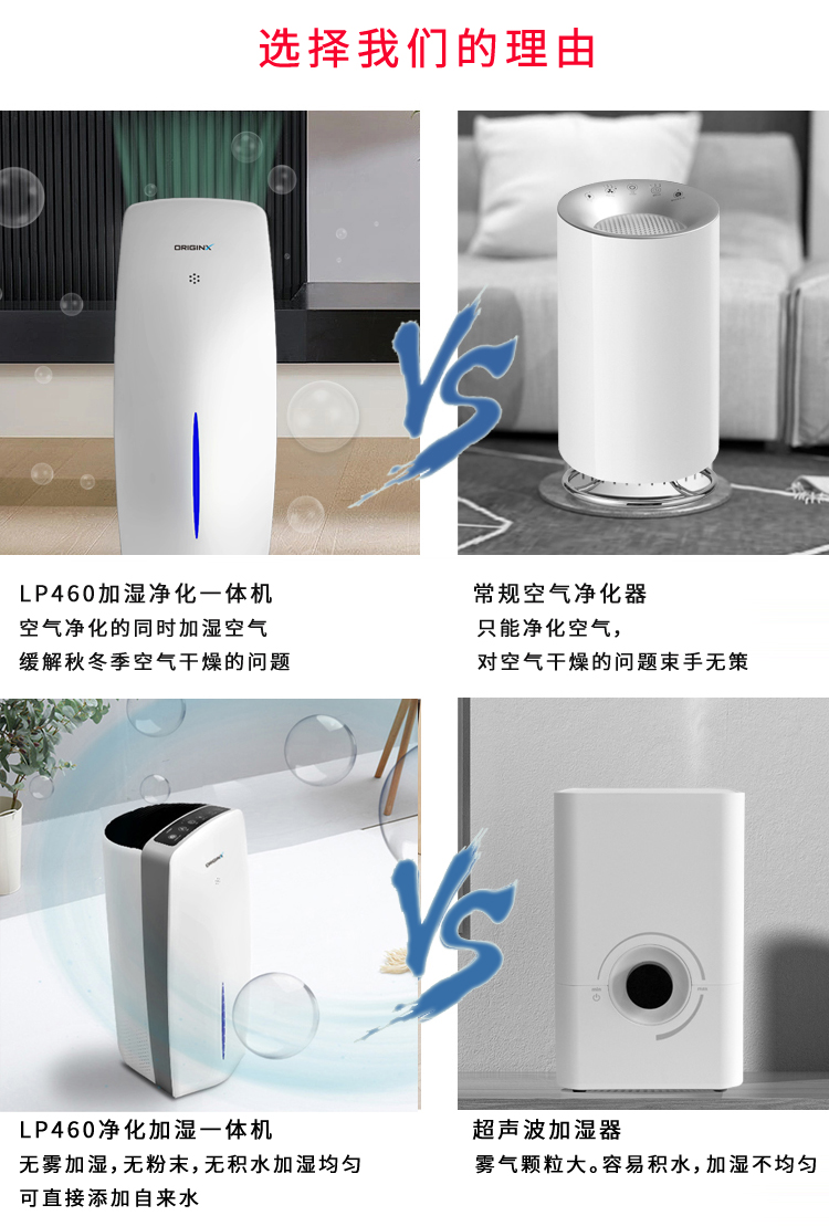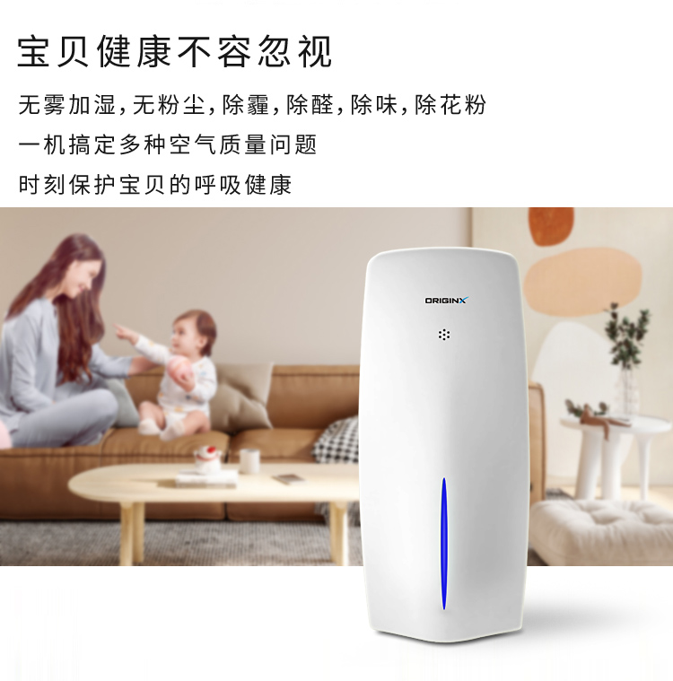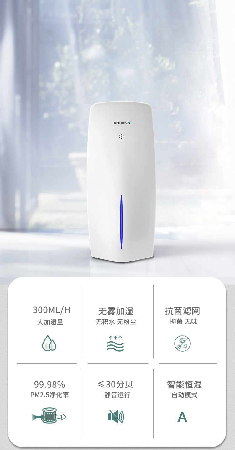 OriginX加湿器,加湿+净化复合型一体机,无雾加湿,不打湿地面,加湿均匀,智能恒湿,高精湿度感应