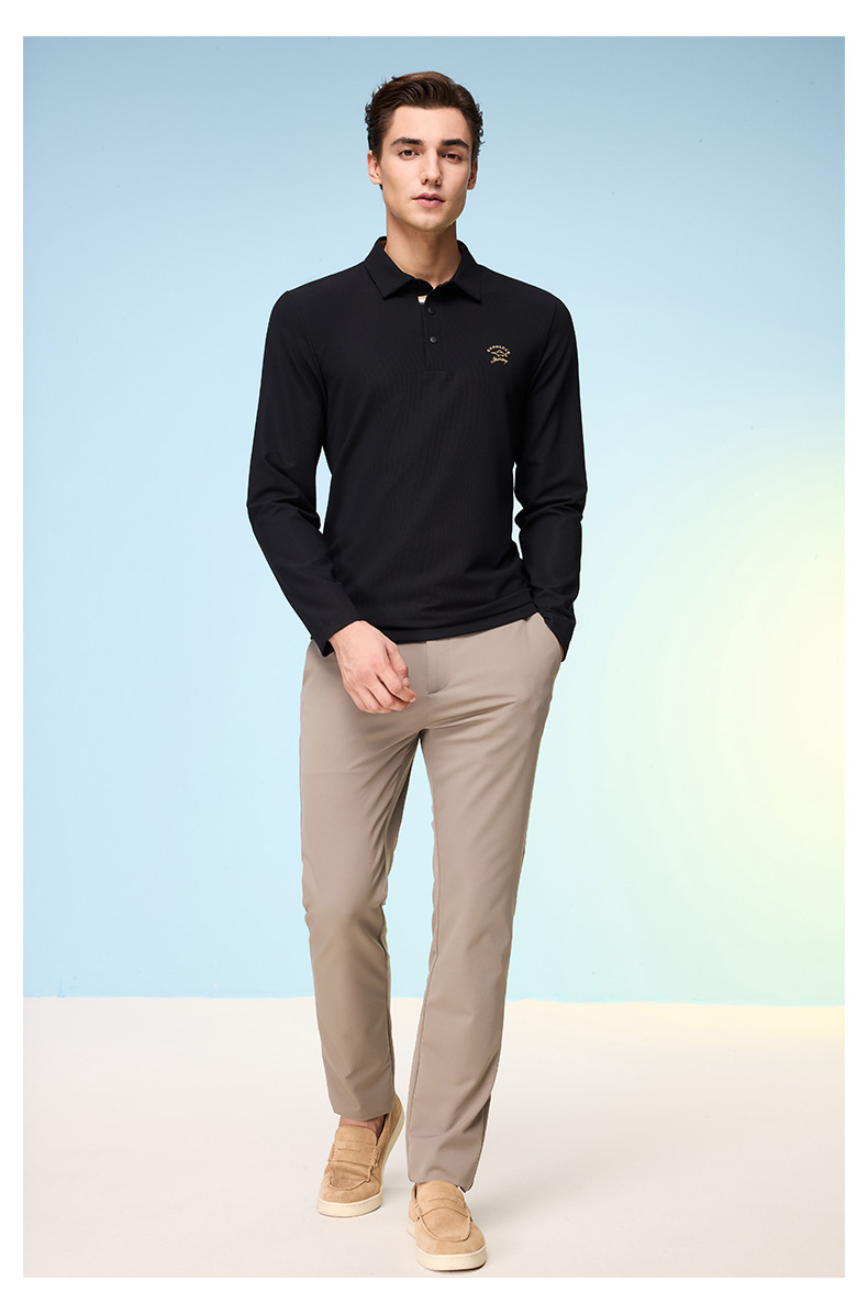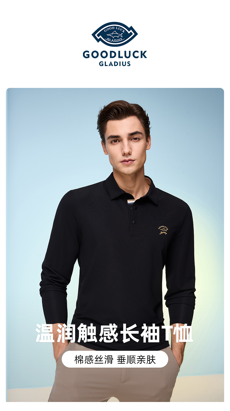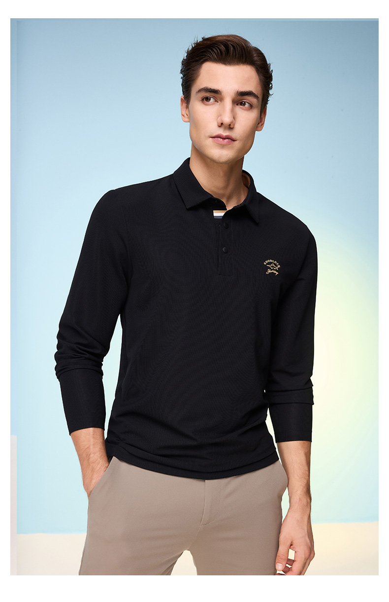 【莱赛尔】德鲨黑色长袖POLO衫男青年2026春新款休闲上衣翻领T恤