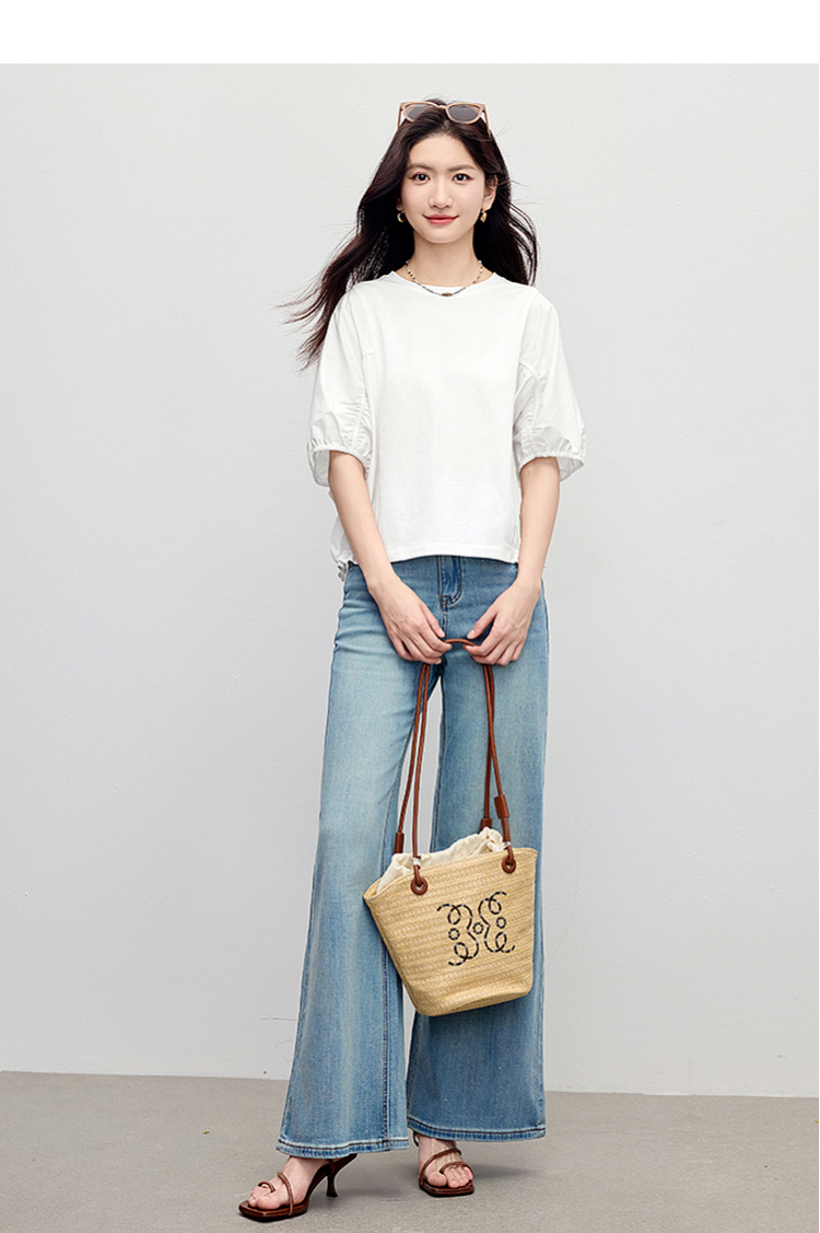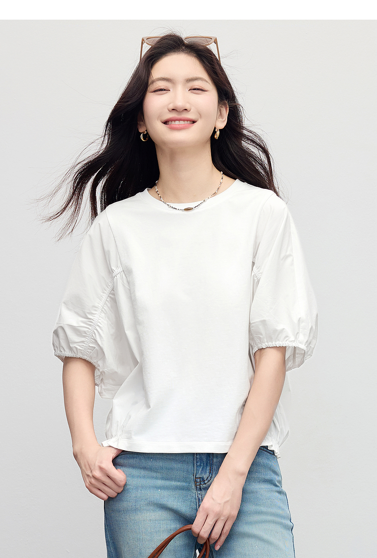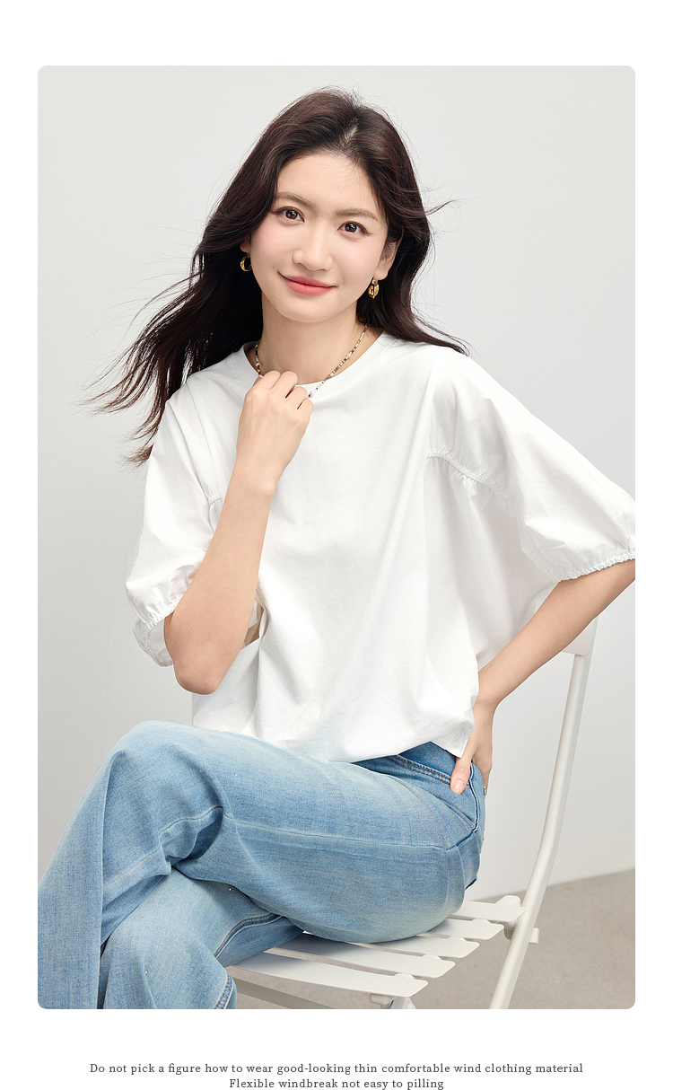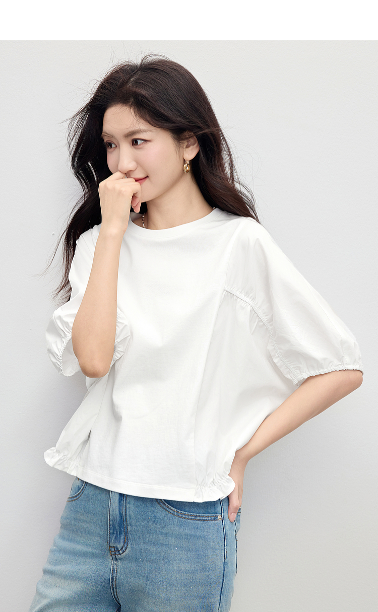 【周末秒杀】熙世界蝙蝠袖天丝白色T恤女宽松休闲独特设计感上衣夏日淡人穿搭