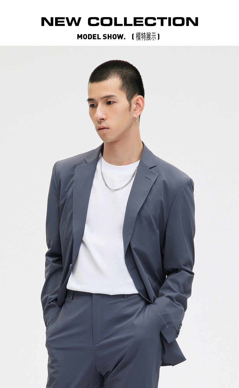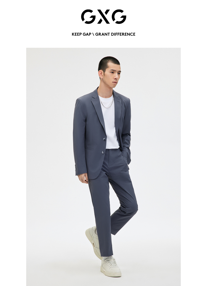 GXG男装蓝色简约基础休闲商务西装外套 春季热卖西服