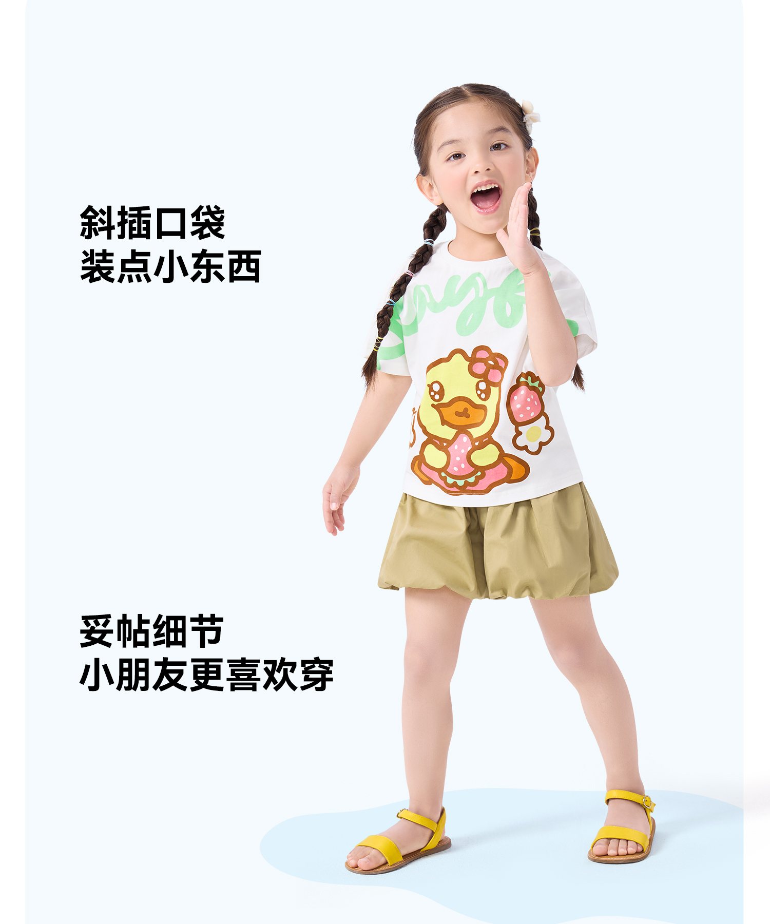 bduck小黄鸭童装夏季女童短裤花苞灯笼裤儿童纯棉裤子休闲裤105-140 FF2659901