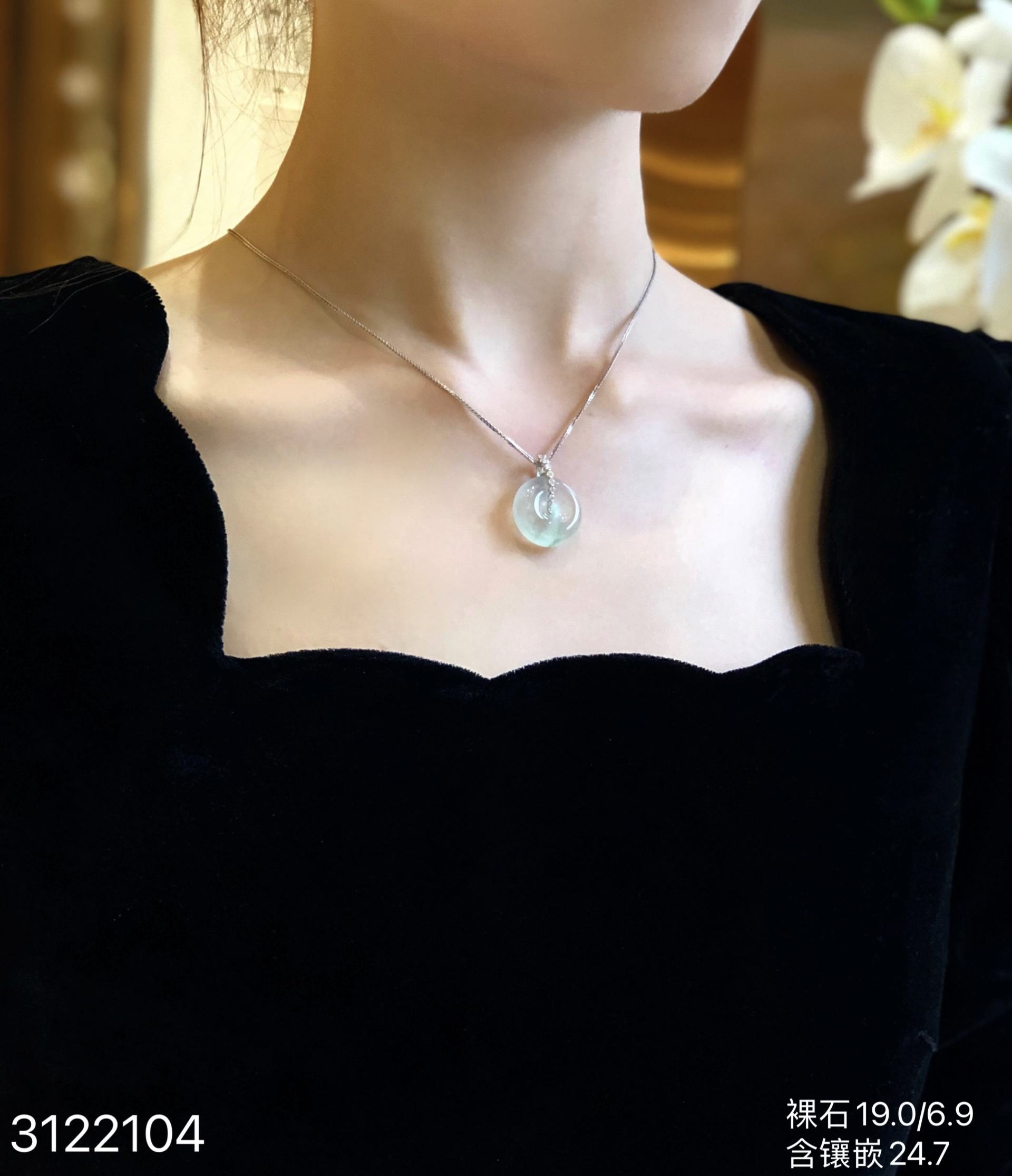 3122104,玻璃飘翠平安扣吊坠。具体价格微信咨询