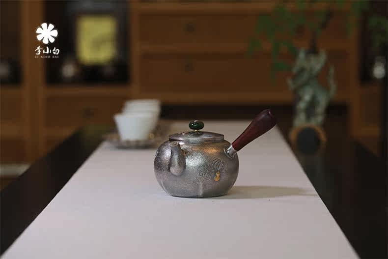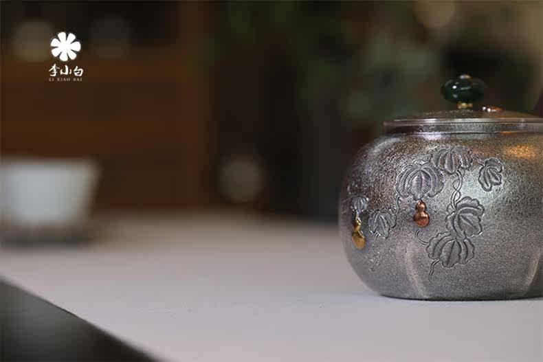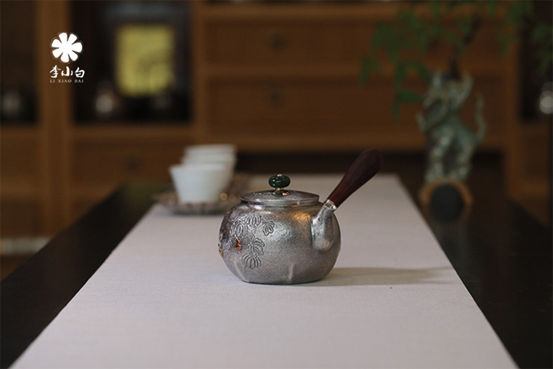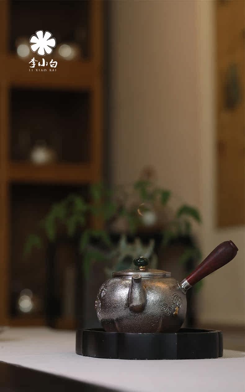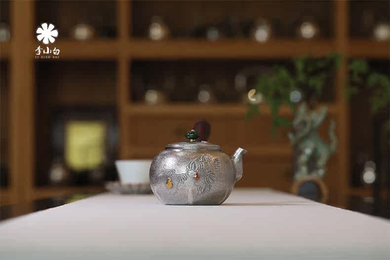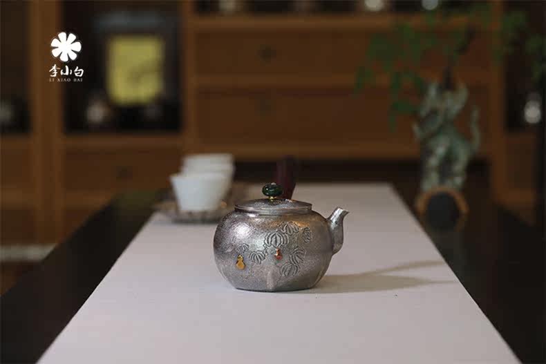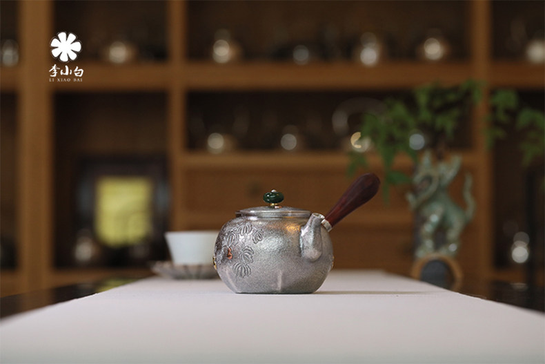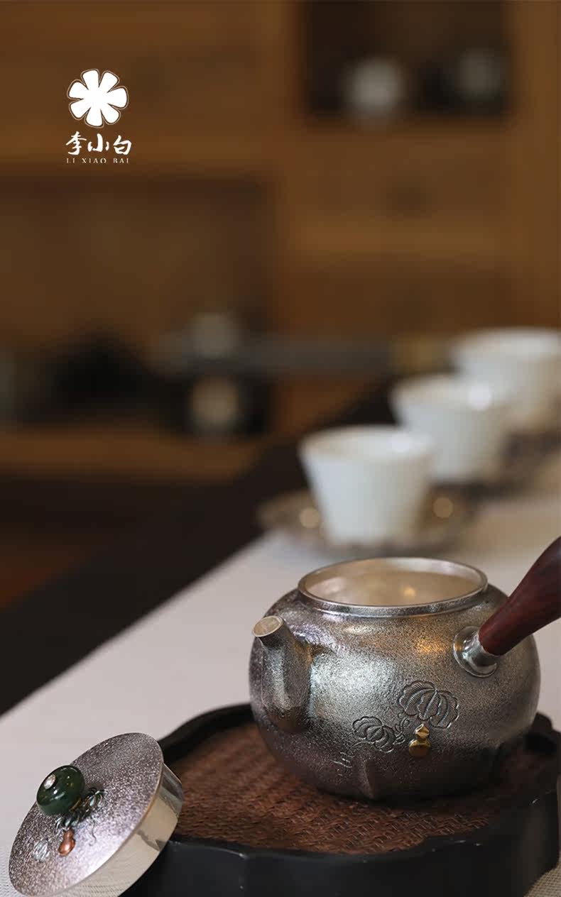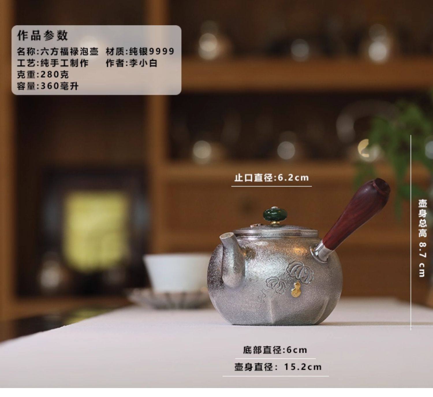 李小白银壶 纯银9999泡茶银壶 纯银泡茶壶 泡茶银壶 烧水银壶 六方福禄泡壶