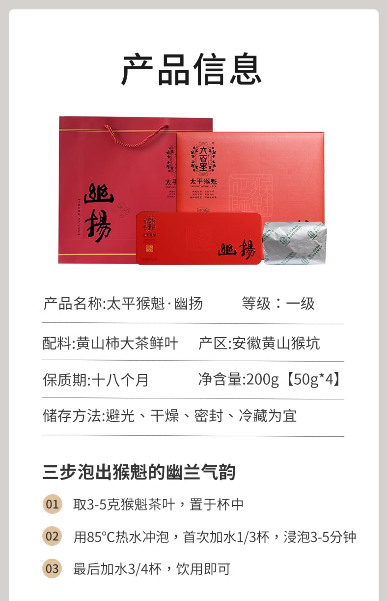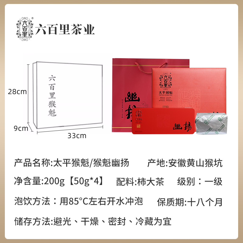 六百里茶叶 太平猴魁 幽扬一级 50g*4罐组合装 茶汤明亮 幽兰气韵 48小时发货