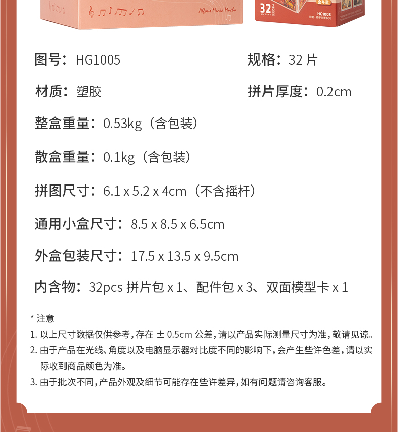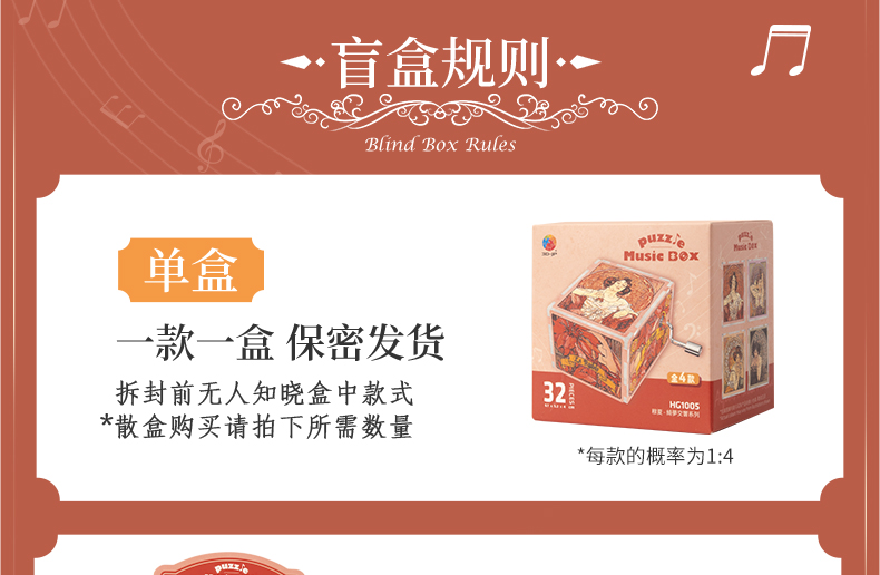 32片 盲盒音乐盒拼图 HG1005 穆夏-绮梦交响系列