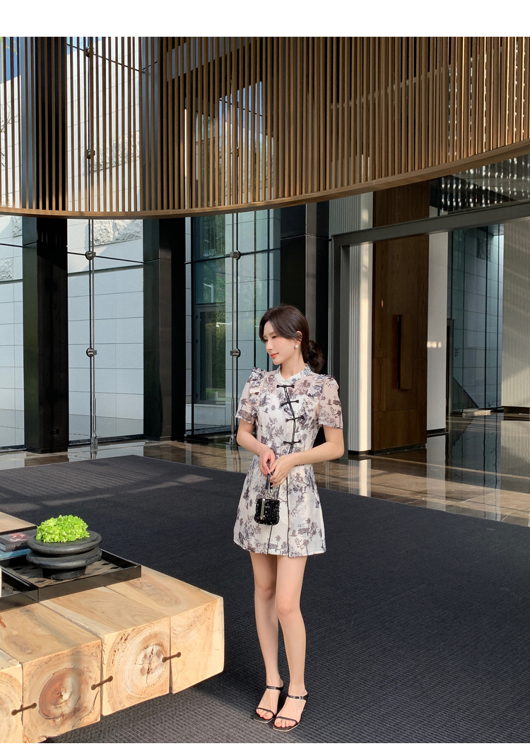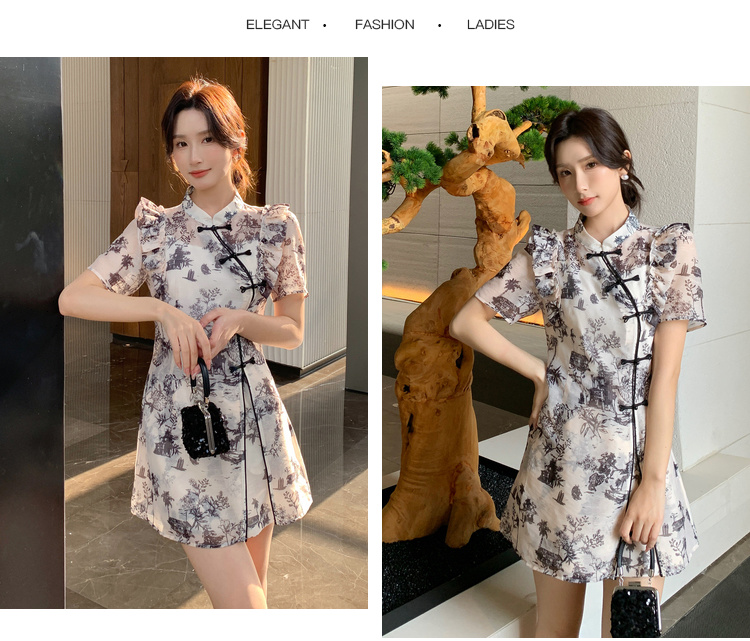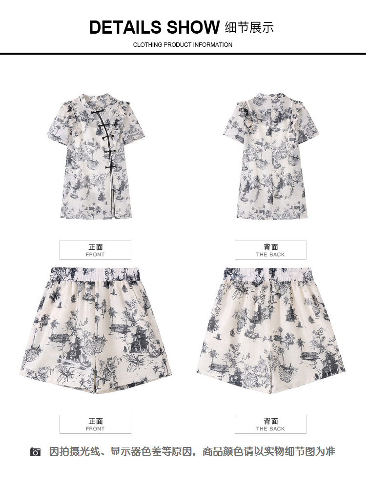 奢姿大码女装2026夏季抽绳减龄印花两件套胖妹妹斜领甜美时尚套装9962994566