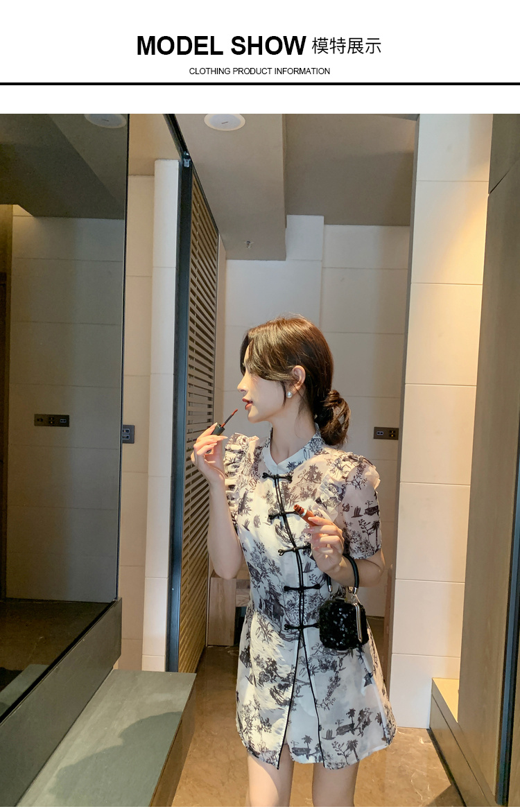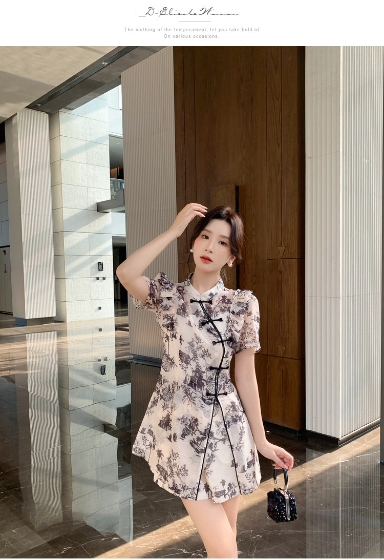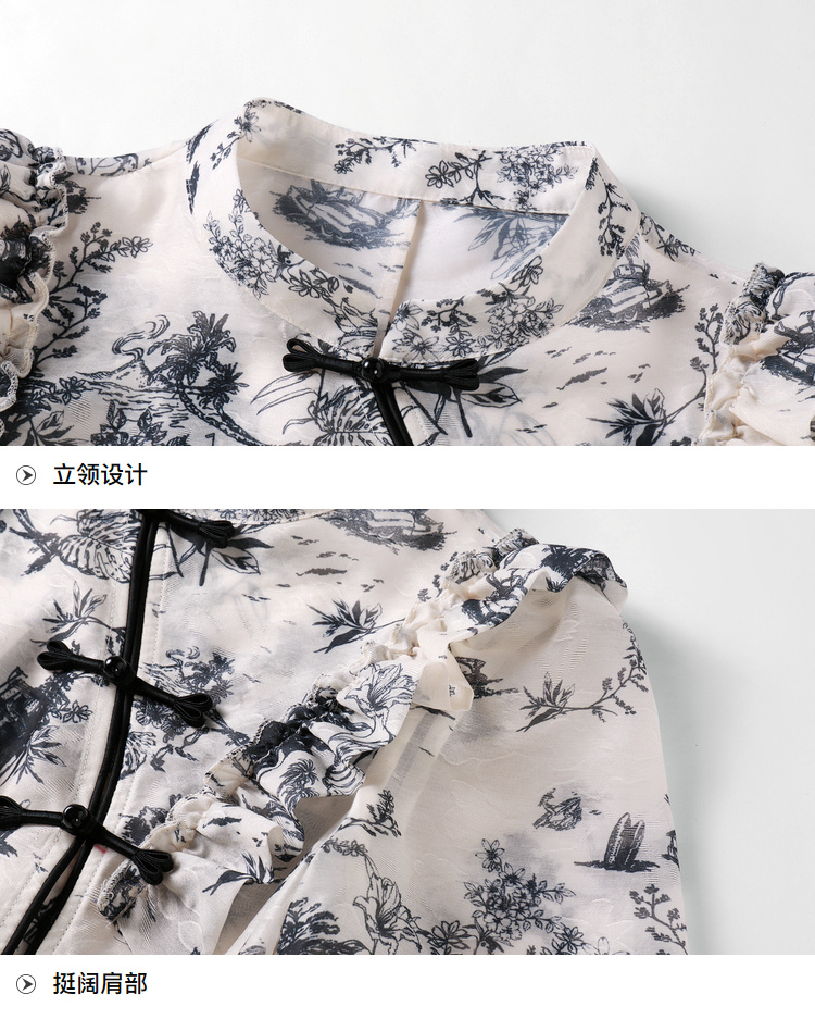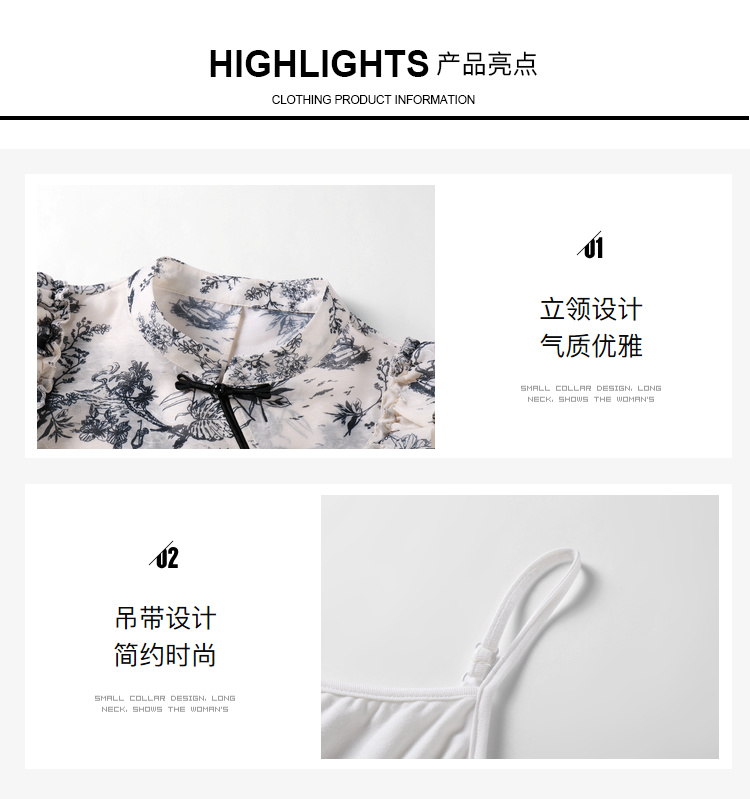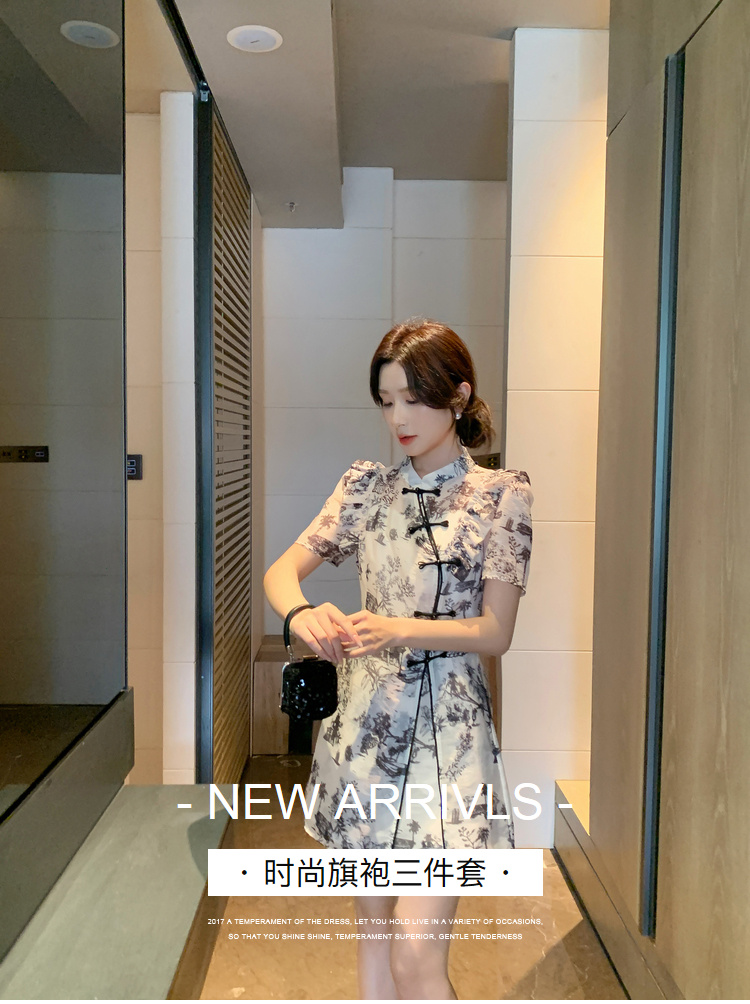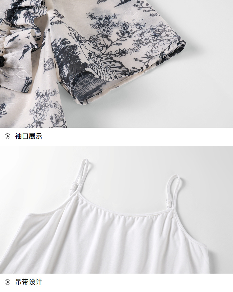 奢姿大码女装年夏季新款减龄水墨印花三件套胖妹妹时尚套装8942990005