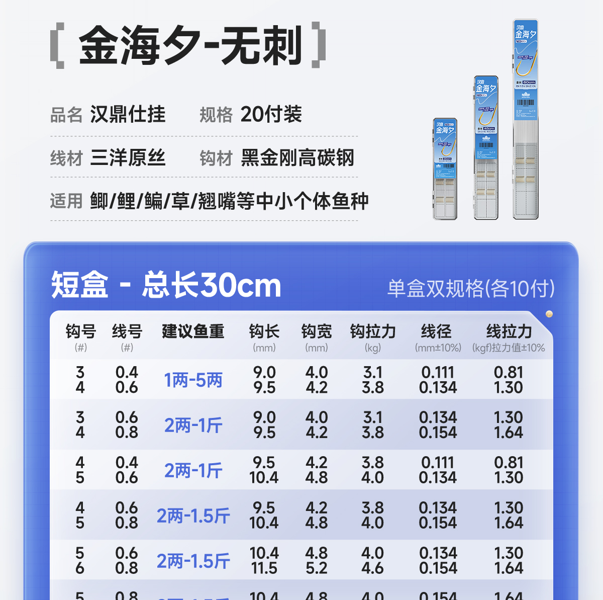 汉鼎金海夕短子线成品子线双钩精绑野钓鲫鲤鱼防缠绕鱼钩成品子线