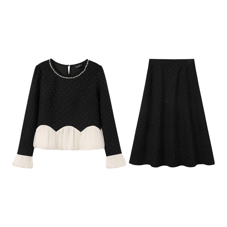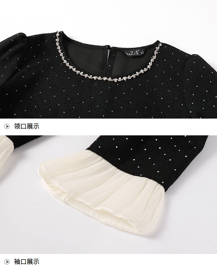 奢姿大码女装2025秋季减龄镶钻拼接两件套胖妹妹时尚半松紧套装9953953792