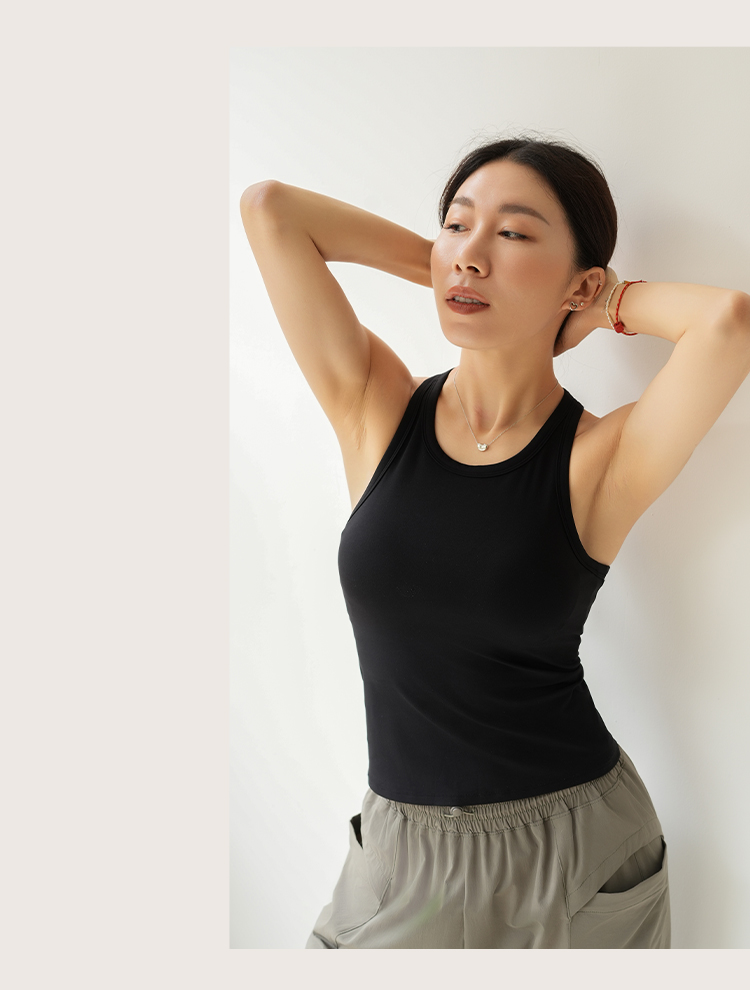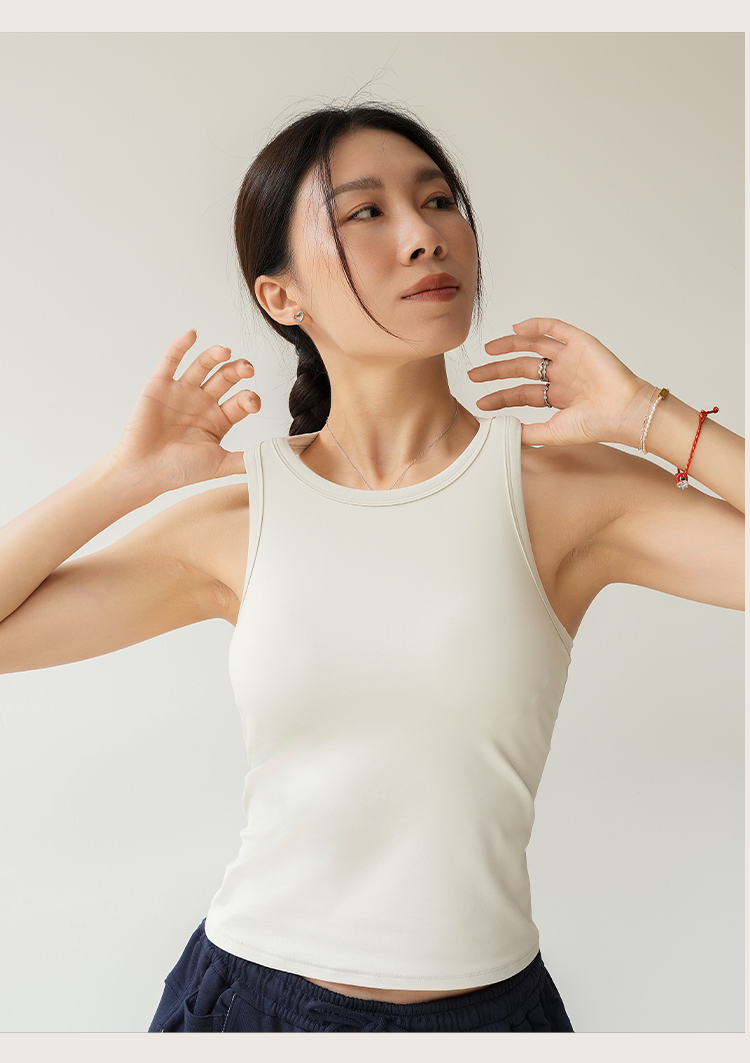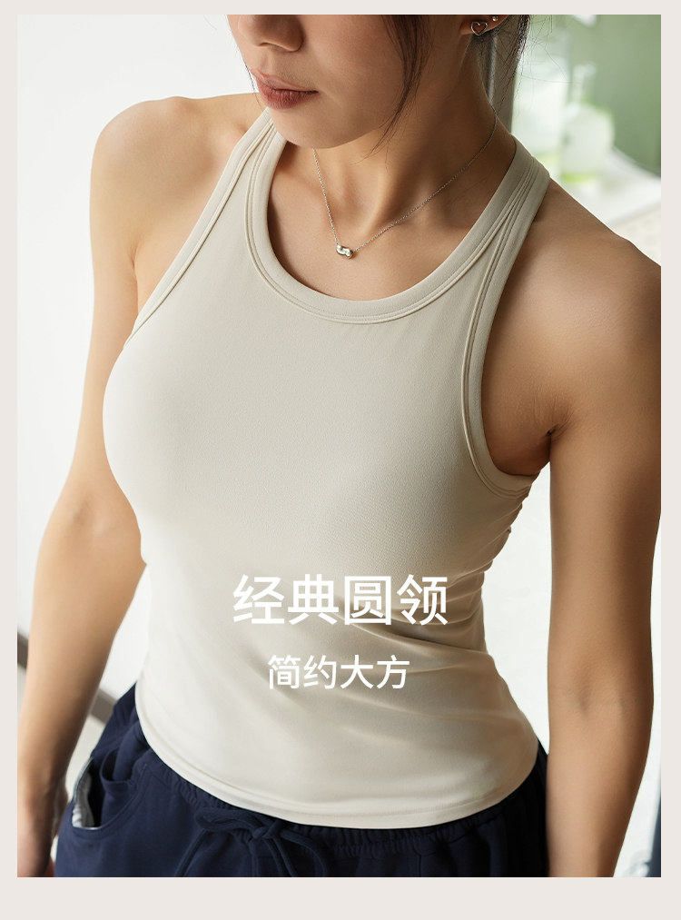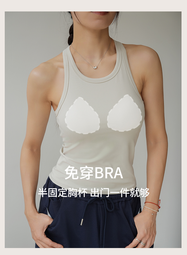 L RECNAVA 裸感一体胸垫修身显瘦工字背心 经典圆领好穿脱 长度到腹 遮肉显瘦