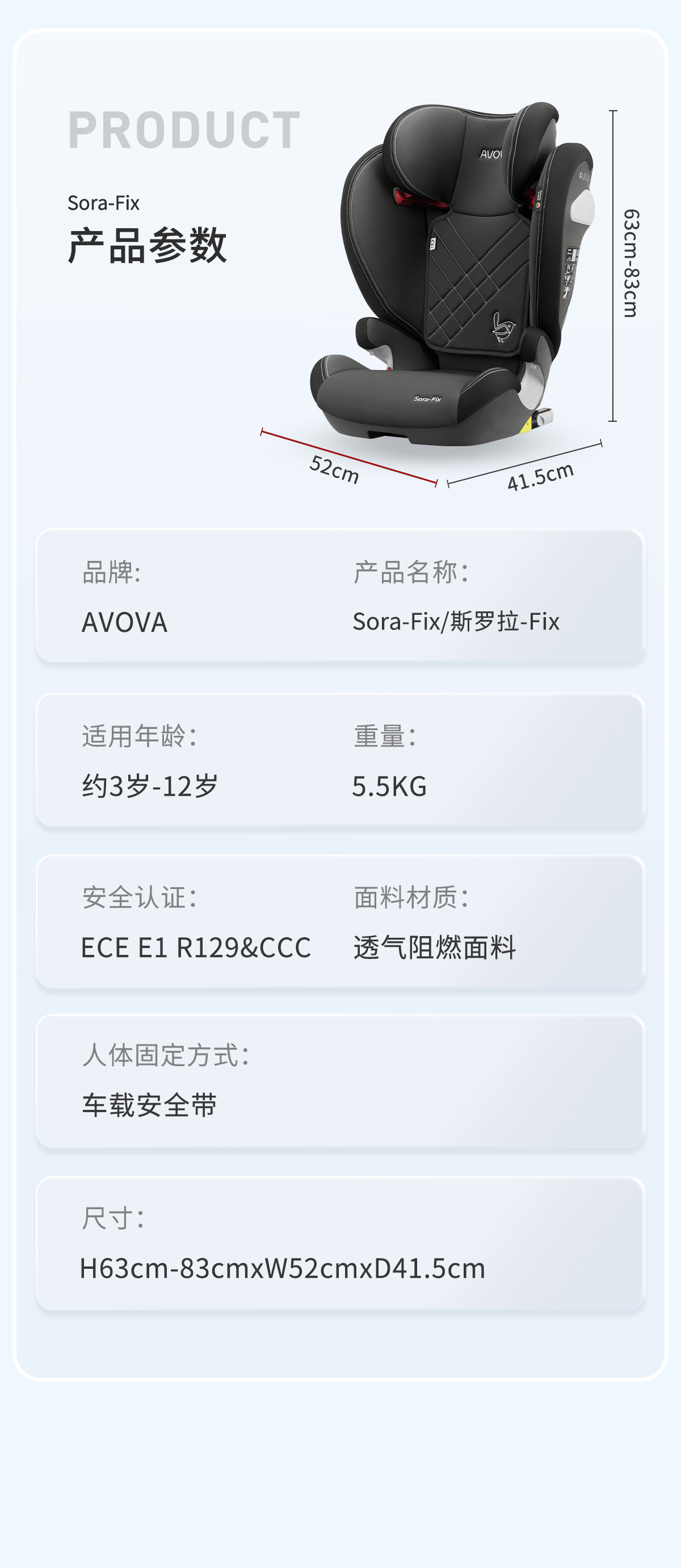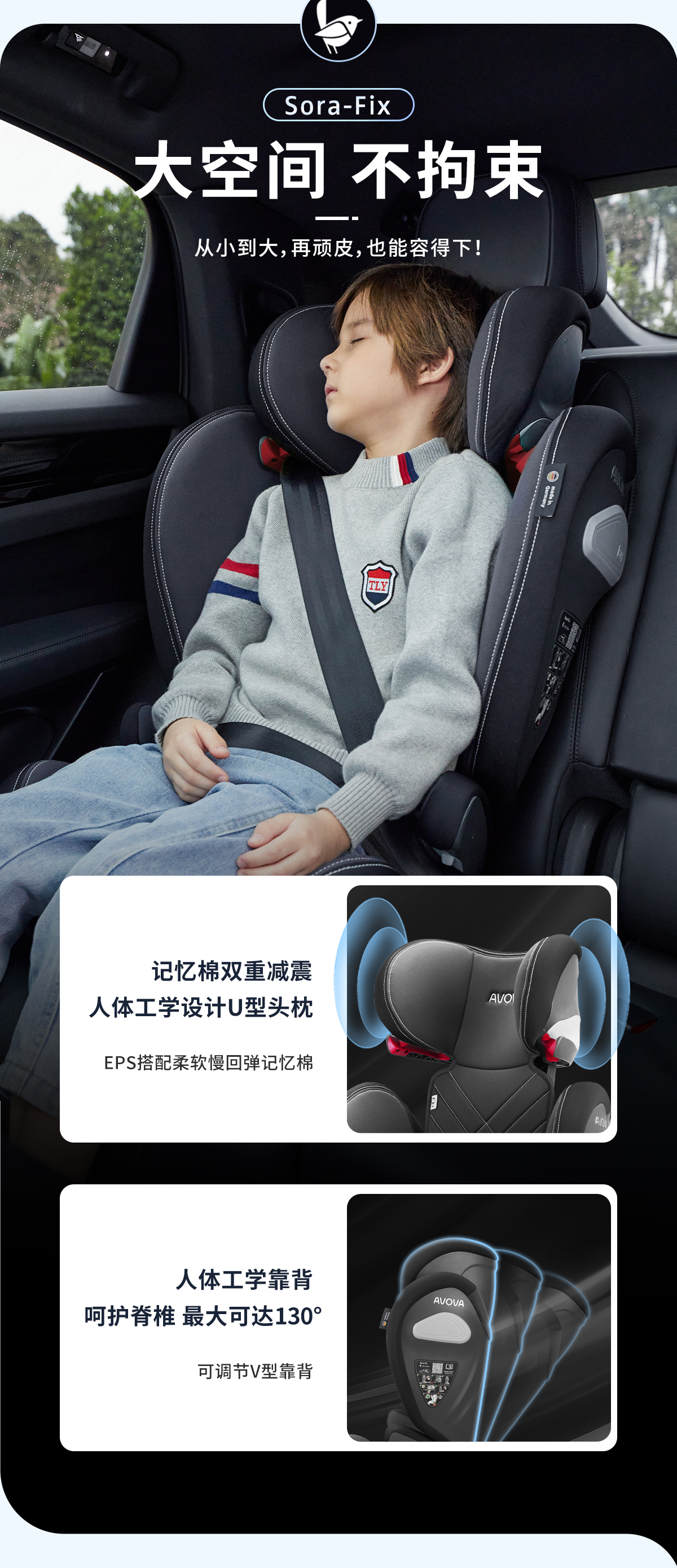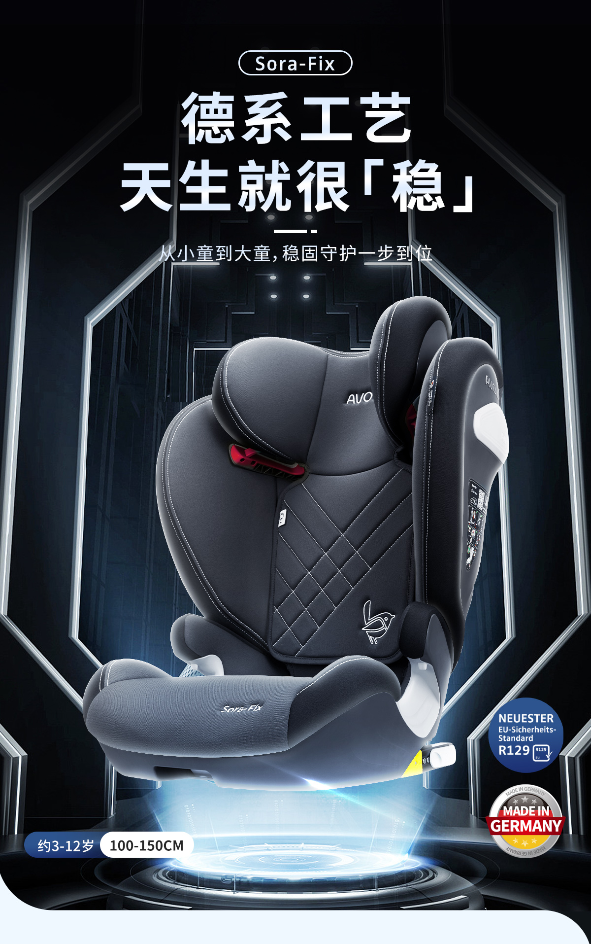 德国 AVOVA Sora-Fix 斯罗拉儿童汽车安全座椅 isofix接口正向安全座椅3-12岁