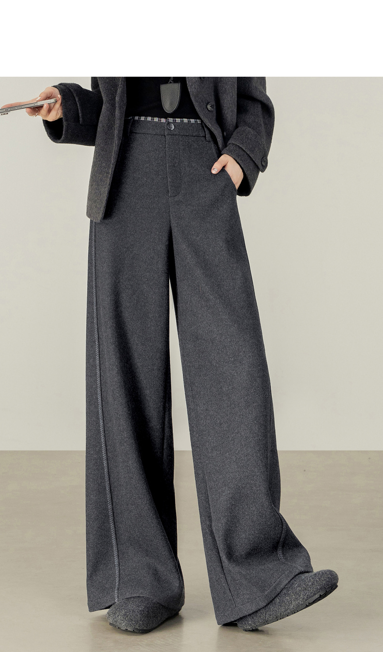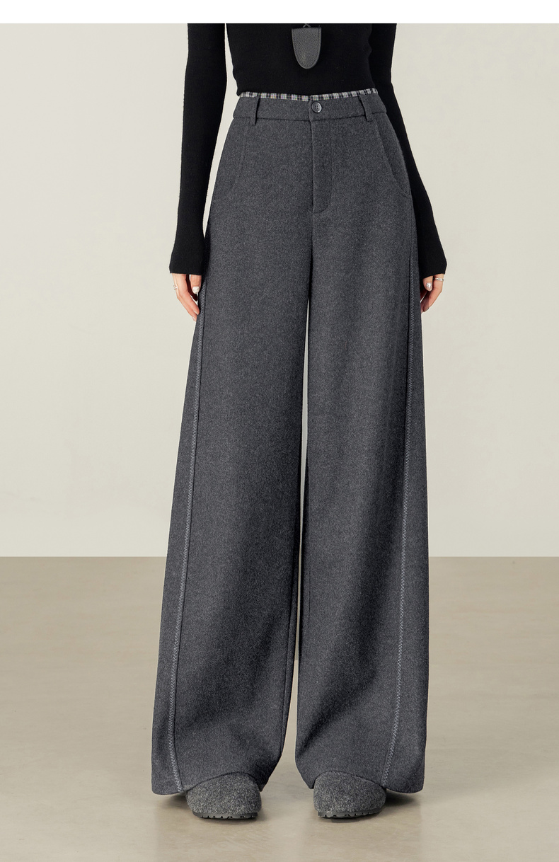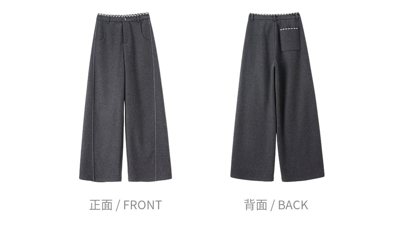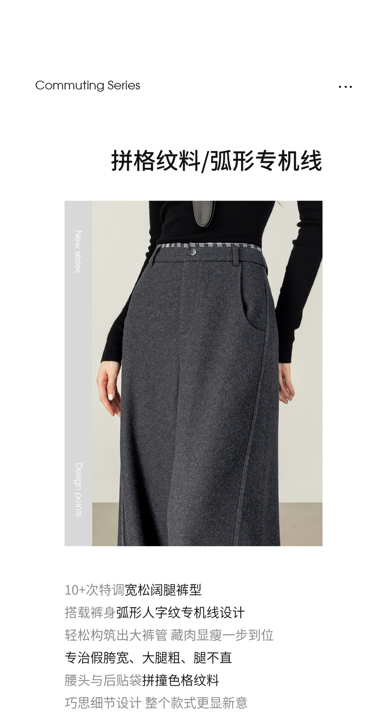 【内购】【厚实保暖】通勤撞色拼接格纹弧形专机线宽松显瘦呢子阔腿长裤-154KD2441