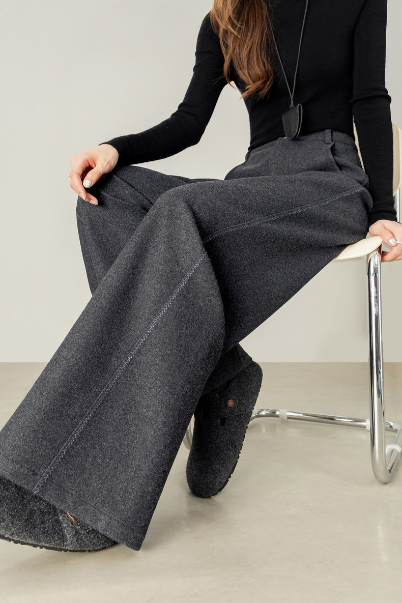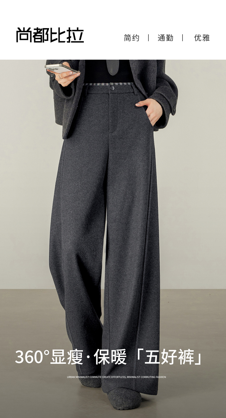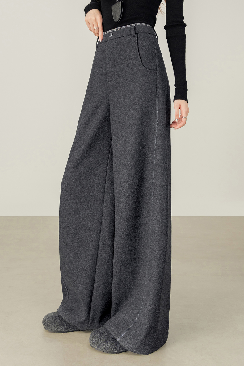 【内购】【厚实保暖】通勤撞色拼接格纹弧形专机线宽松显瘦呢子阔腿长裤-154KD2441