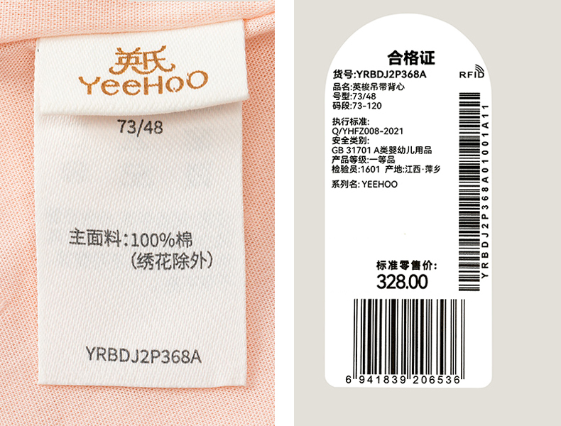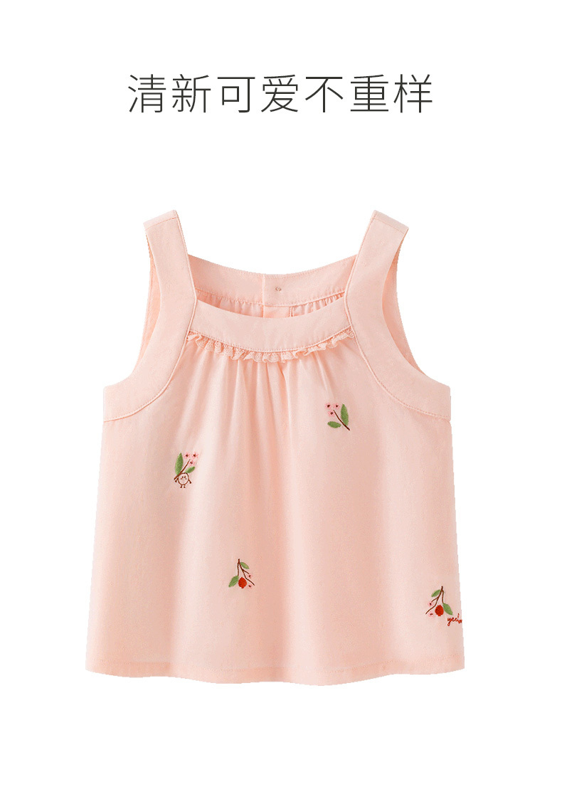 英氏女童吊带背心T恤2023夏季新品儿童无袖方领上衣服YRBDJ2P368A
