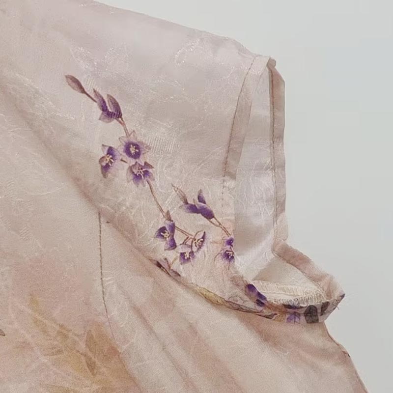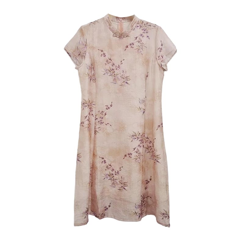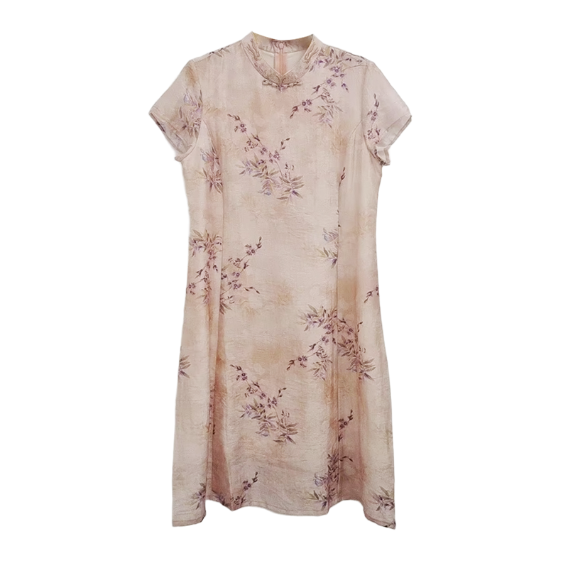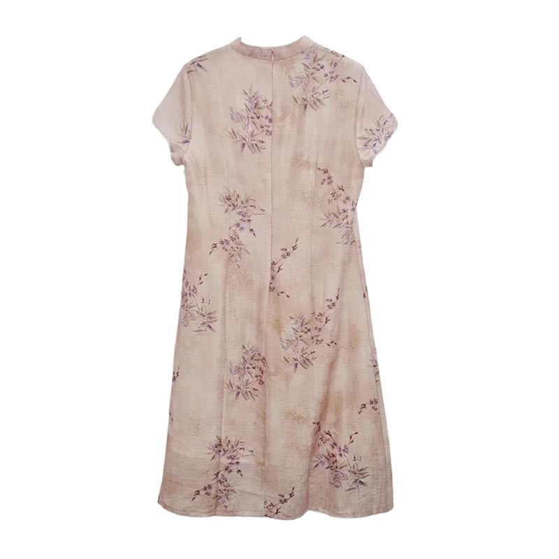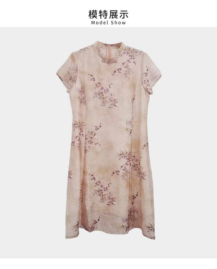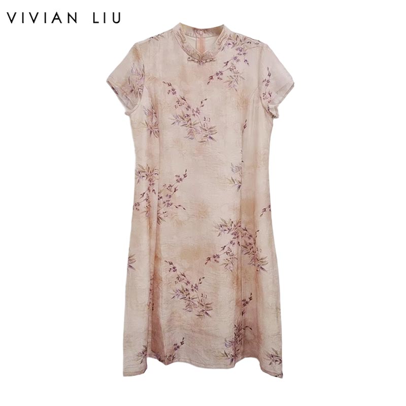 VIVIAN LIU薇薇安刘C2534101 盘扣背拉链花卉印花短袖旗袍连衣裙