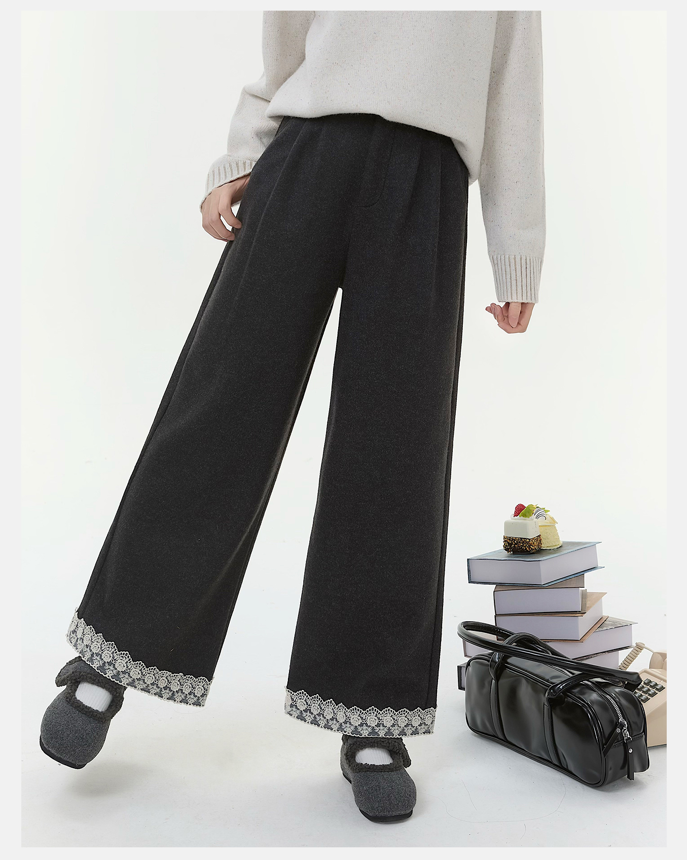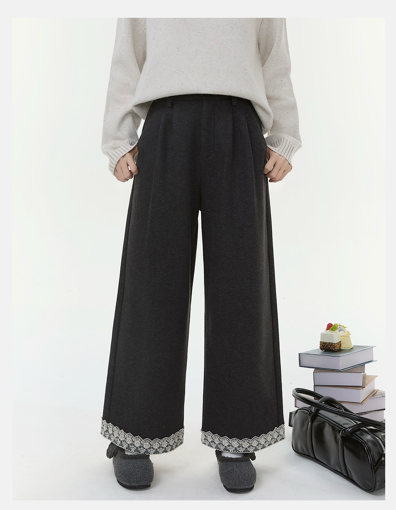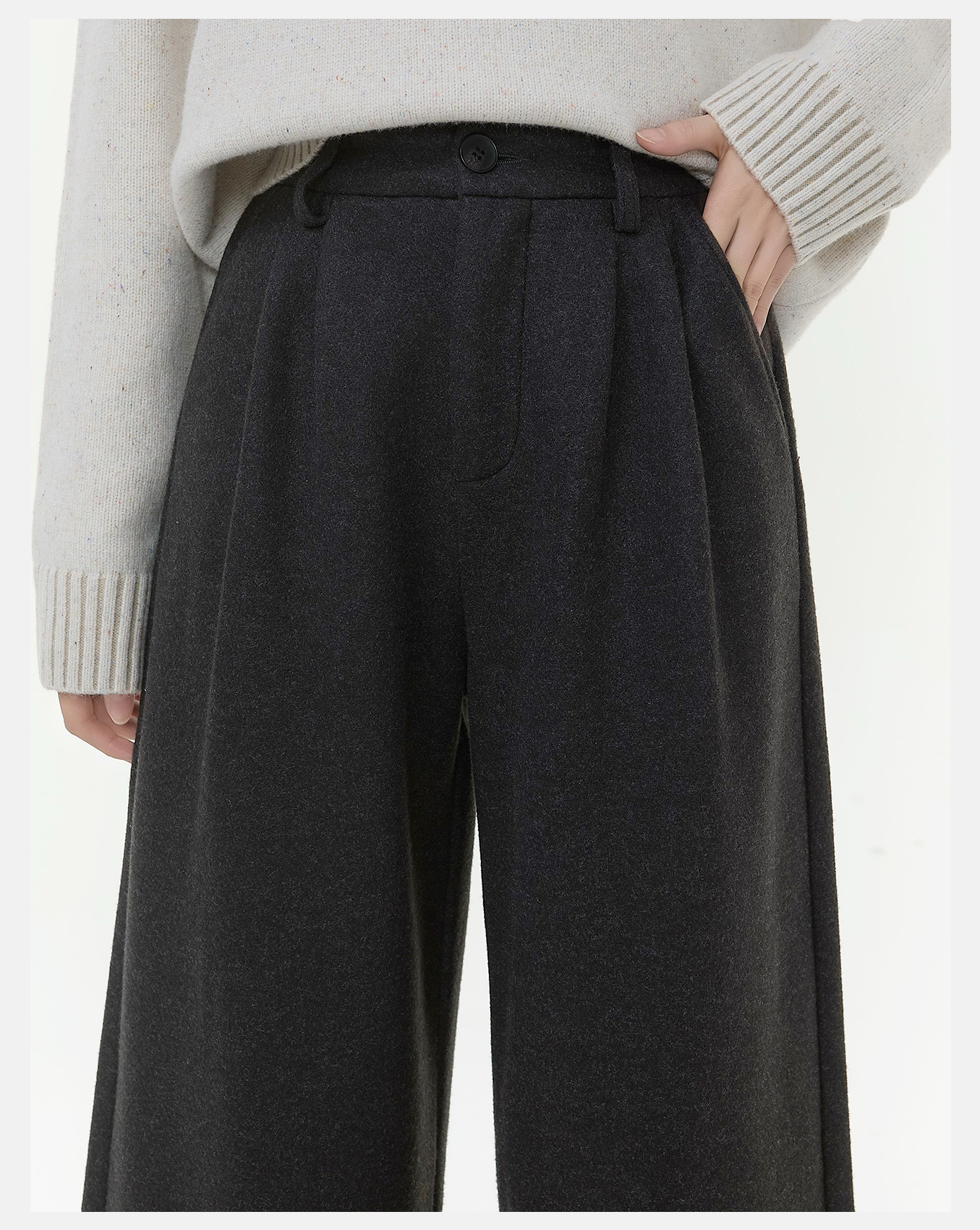 P&X设计师女装2025冬季九分裤阔腿呢料休闲长裤 825409164 灰色