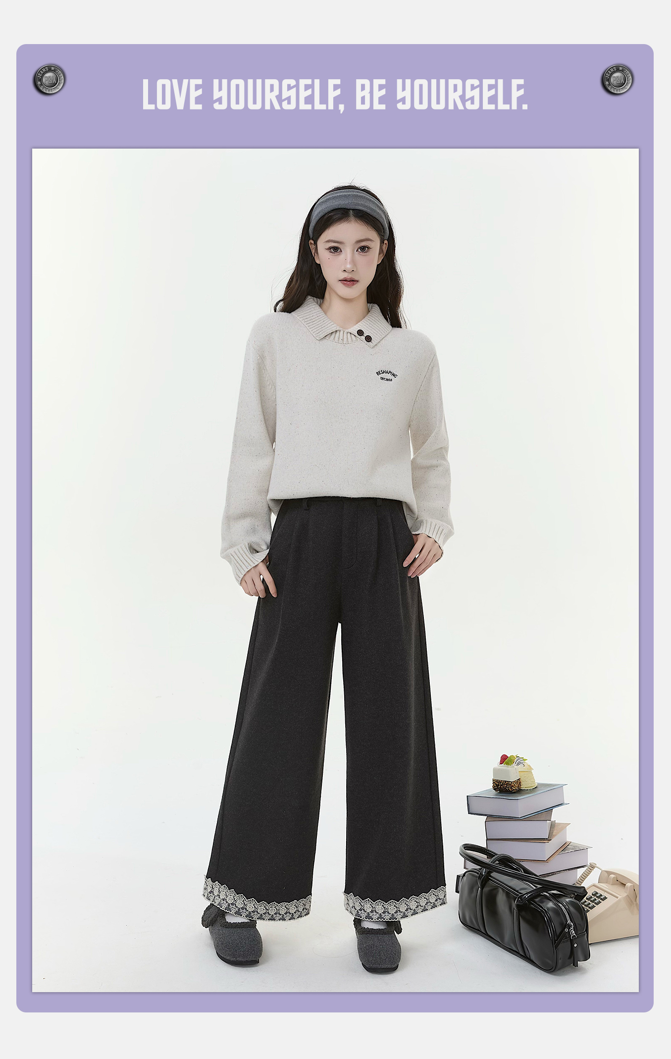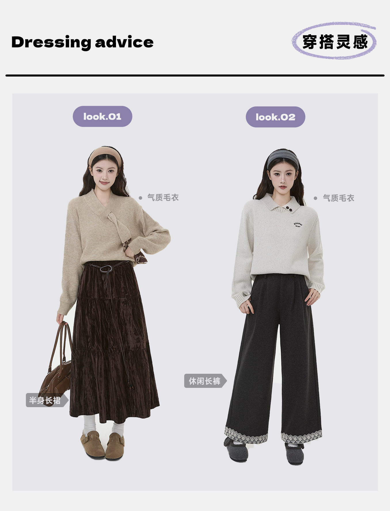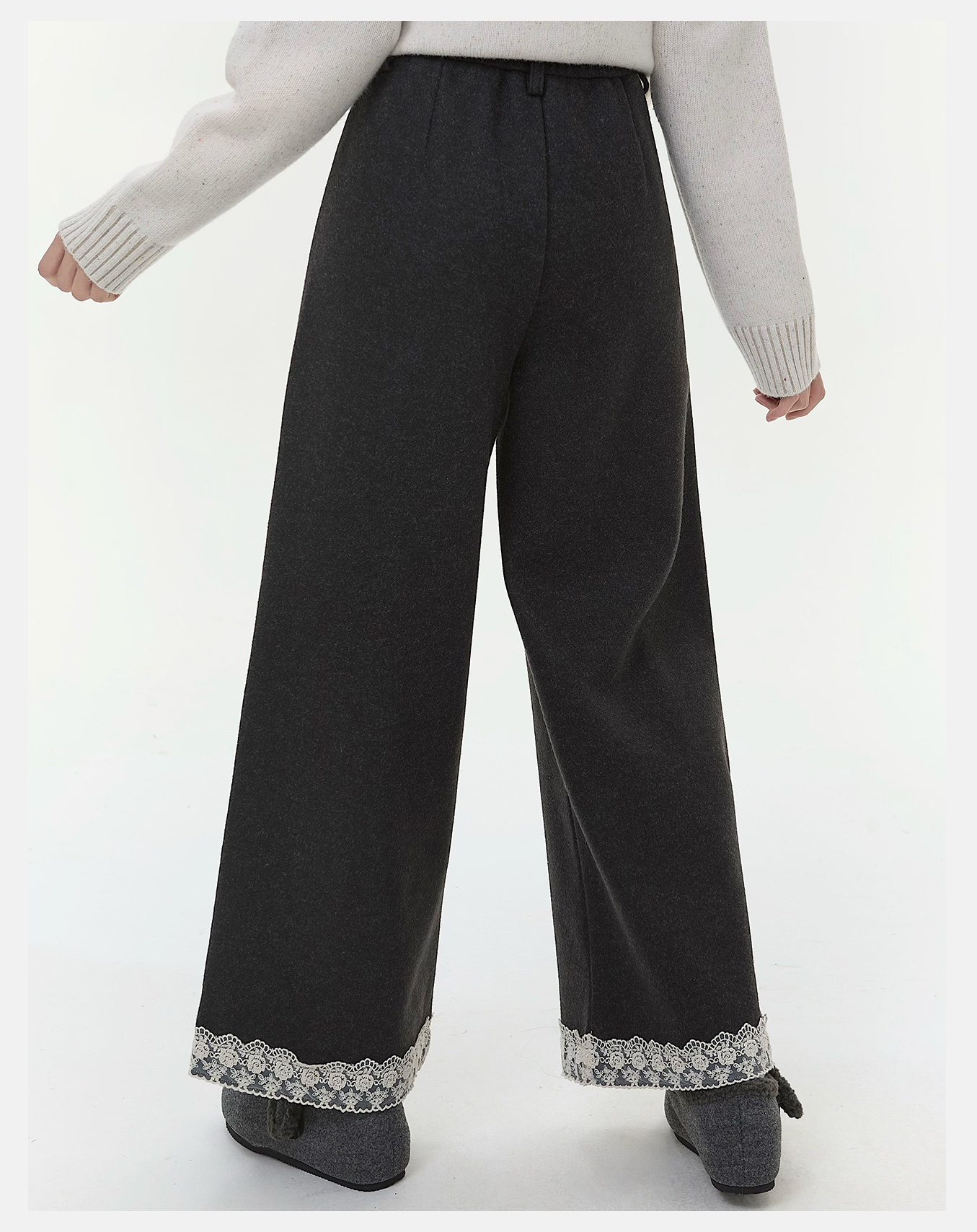 P&X设计师女装2025冬季九分裤阔腿呢料休闲长裤 825409164 灰色