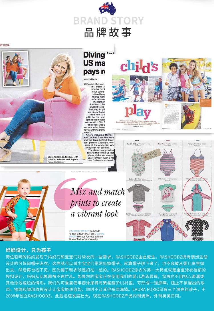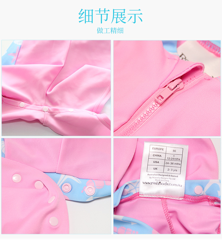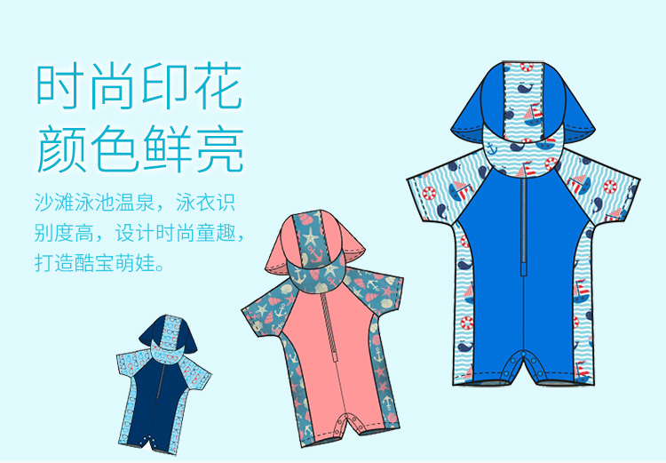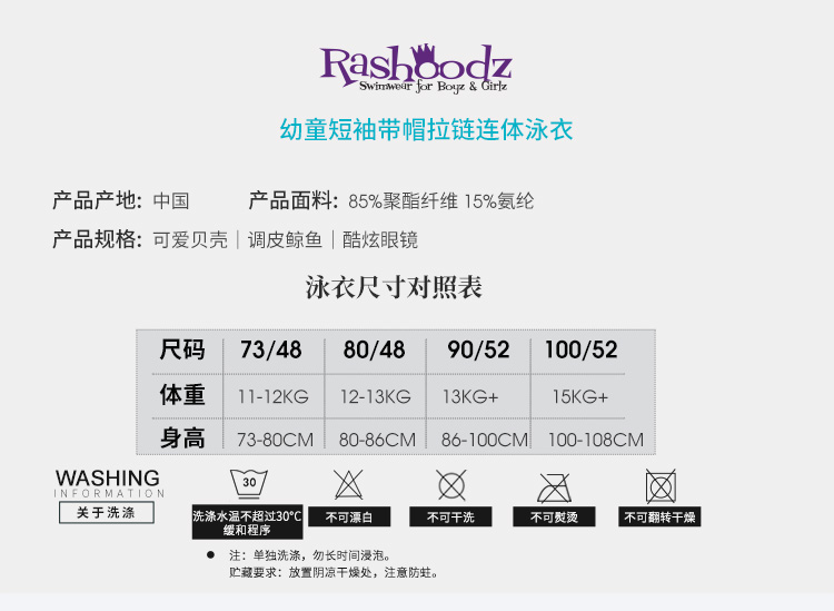 Rashoodz 儿童短袖带帽防晒游泳衣拉链连体泳衣男女宝宝沙滩衣