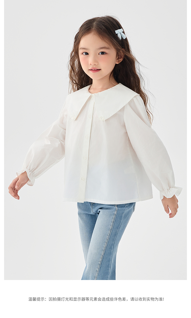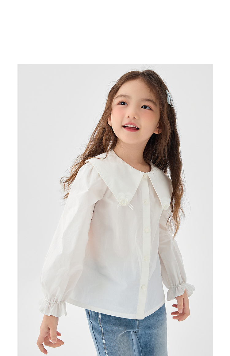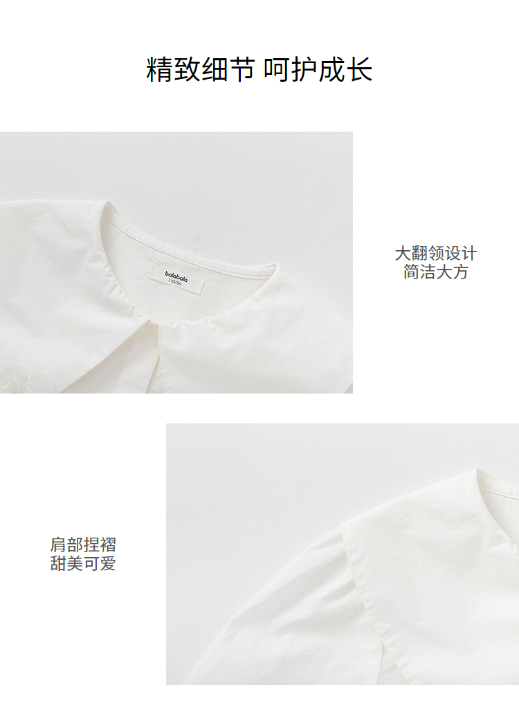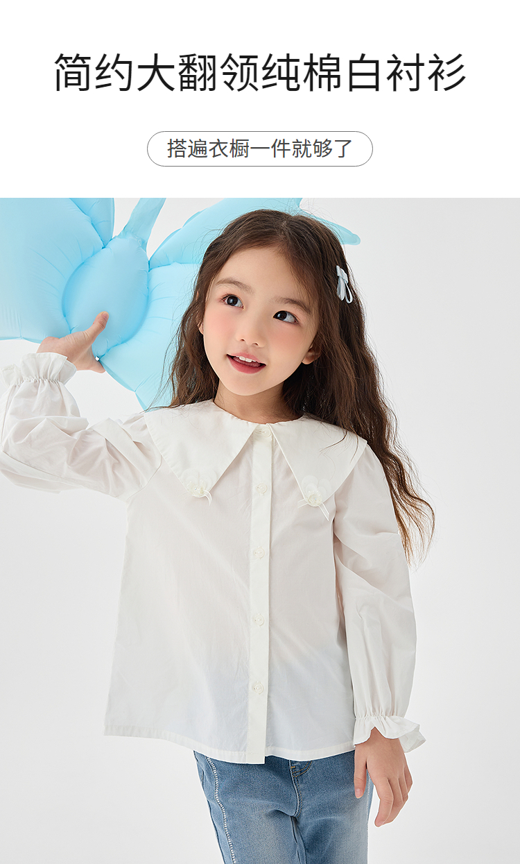 巴拉巴拉童装女童长袖衬衫纯棉白衬衣春季上衣简约百搭舒适亲肤★