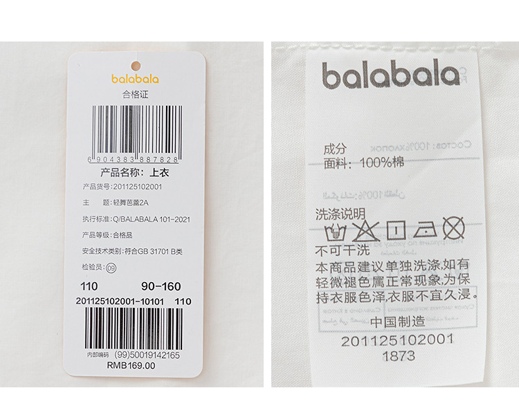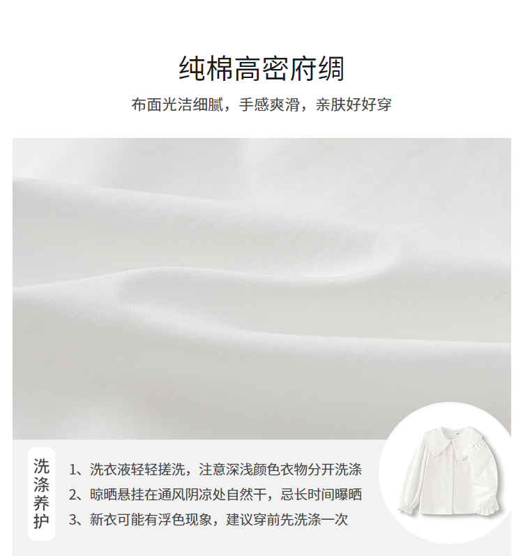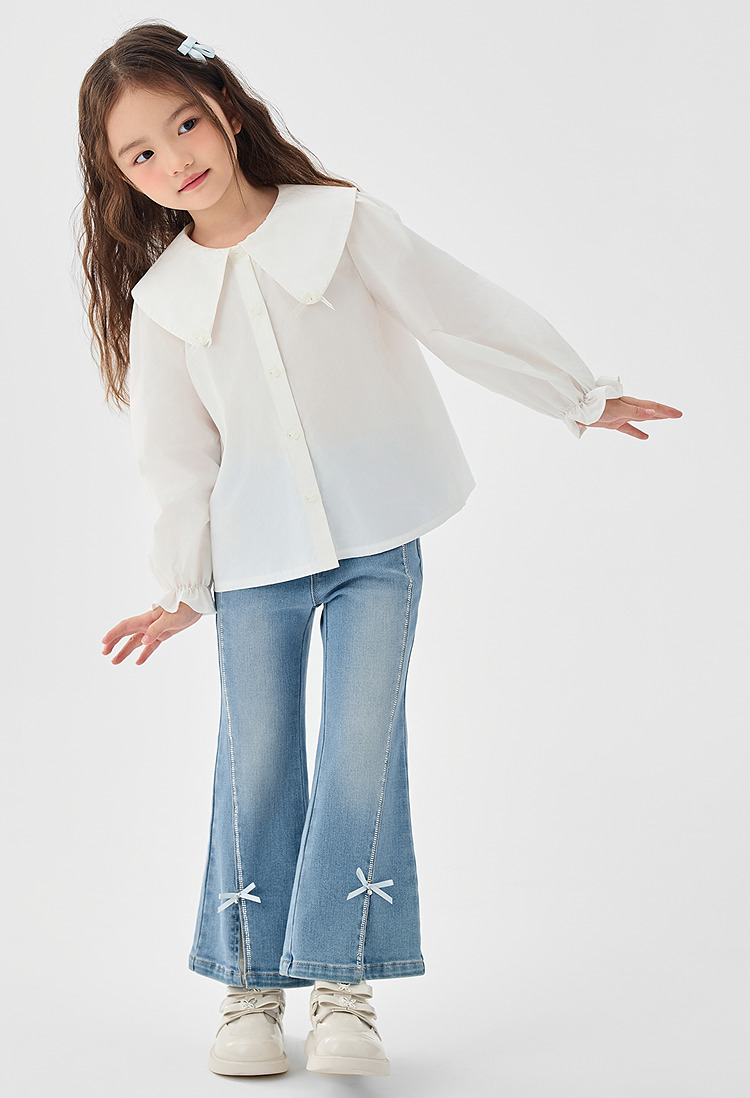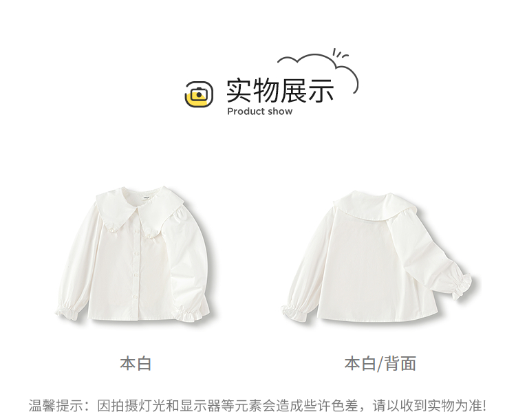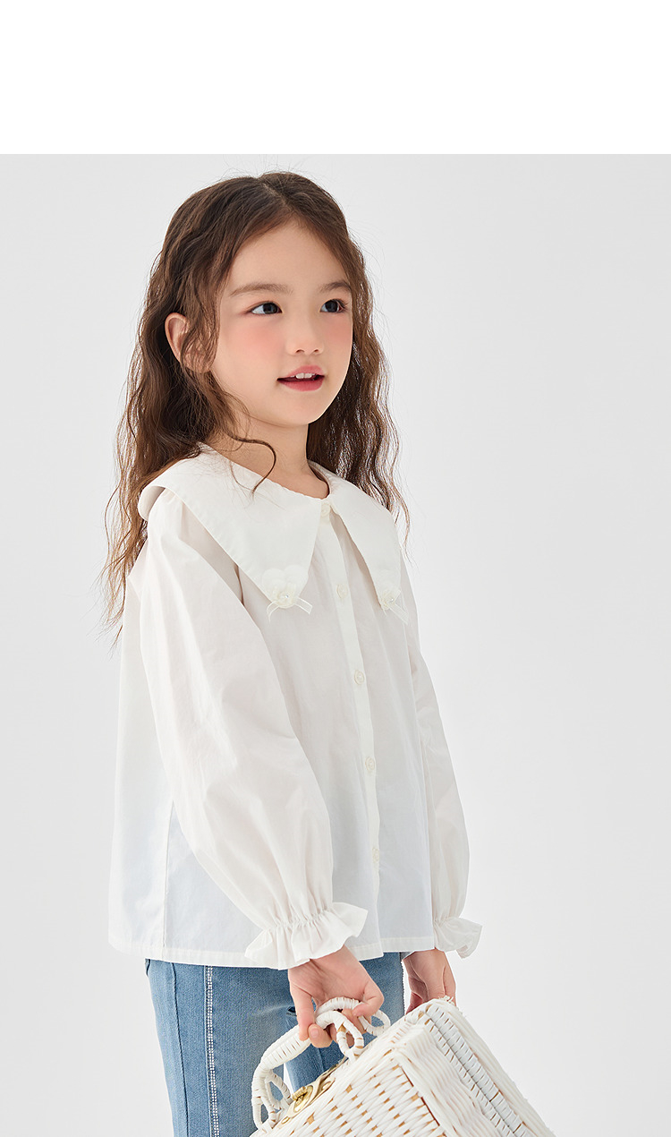 巴拉巴拉童装女童长袖衬衫纯棉白衬衣春季上衣简约百搭舒适亲肤★