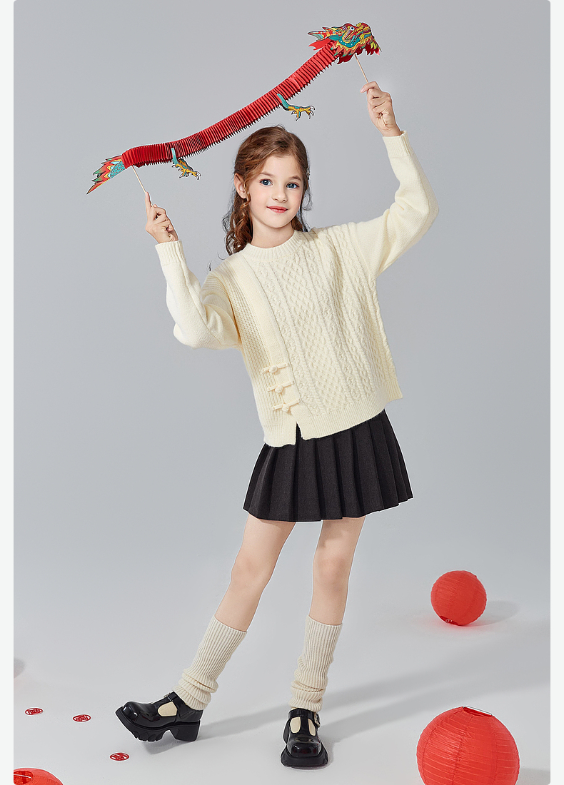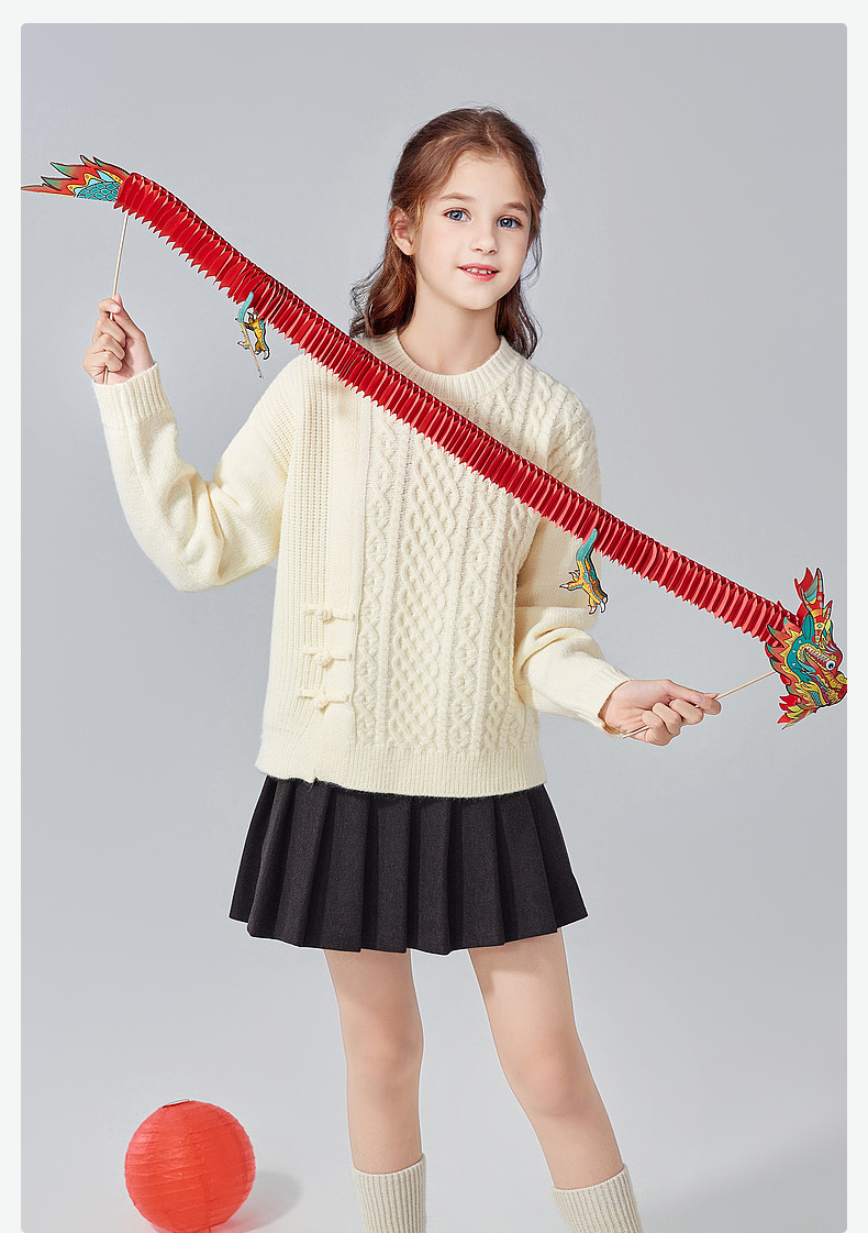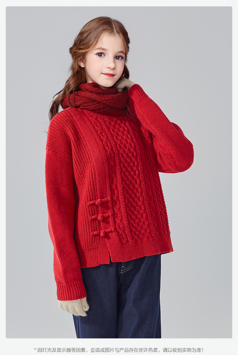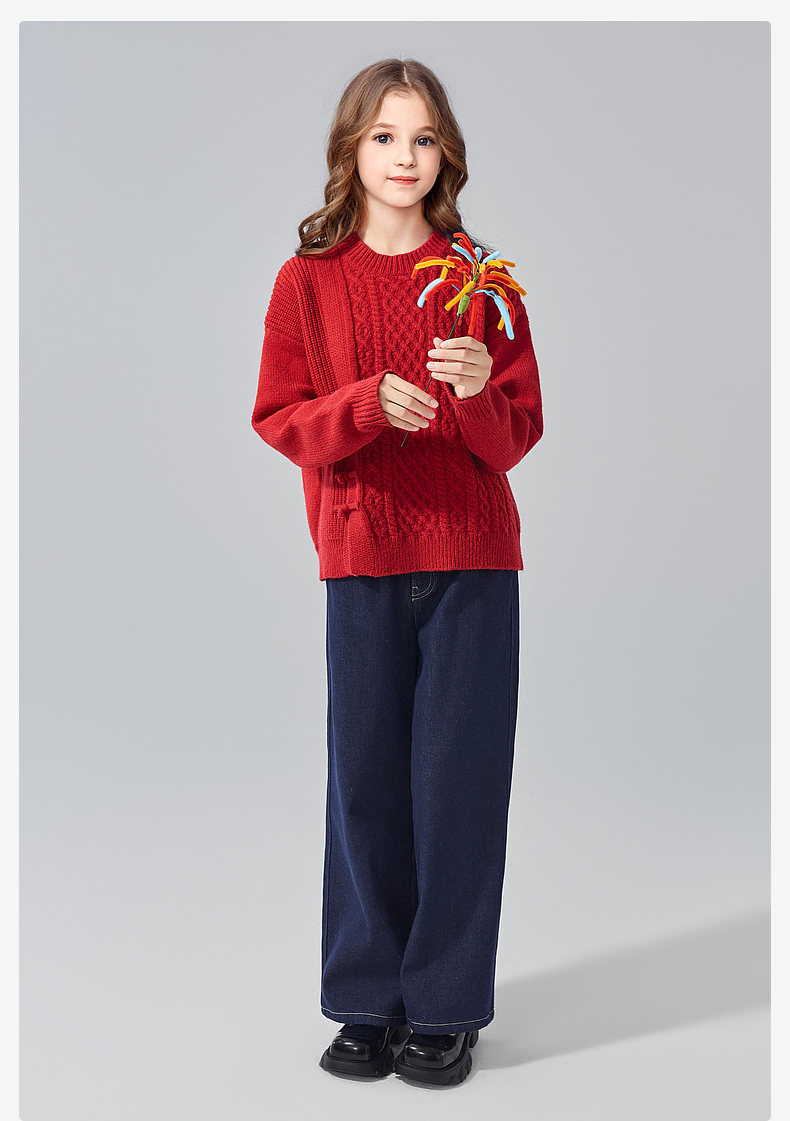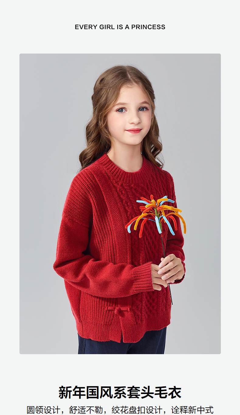 笛莎Deesha青少年女童毛衫2024冬季新年国风系套头毛衣