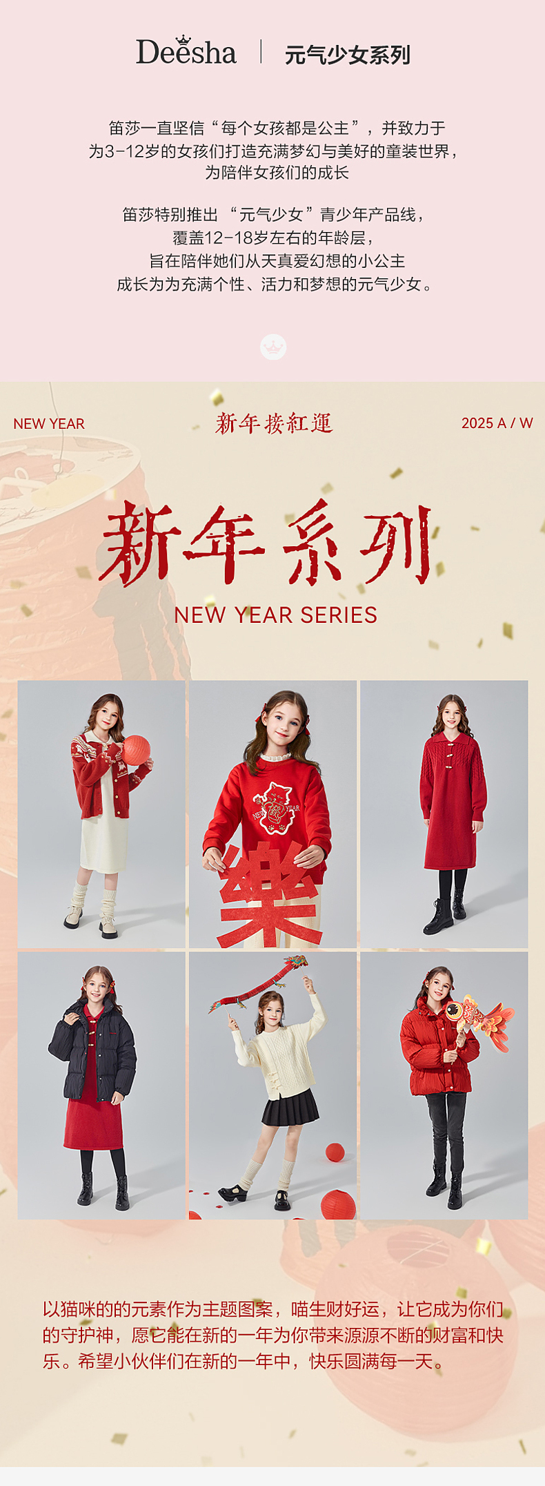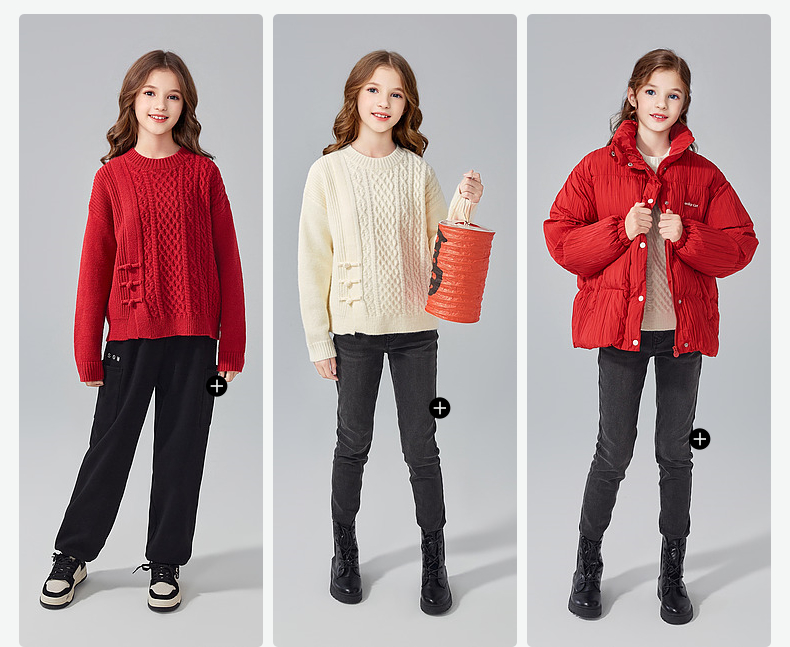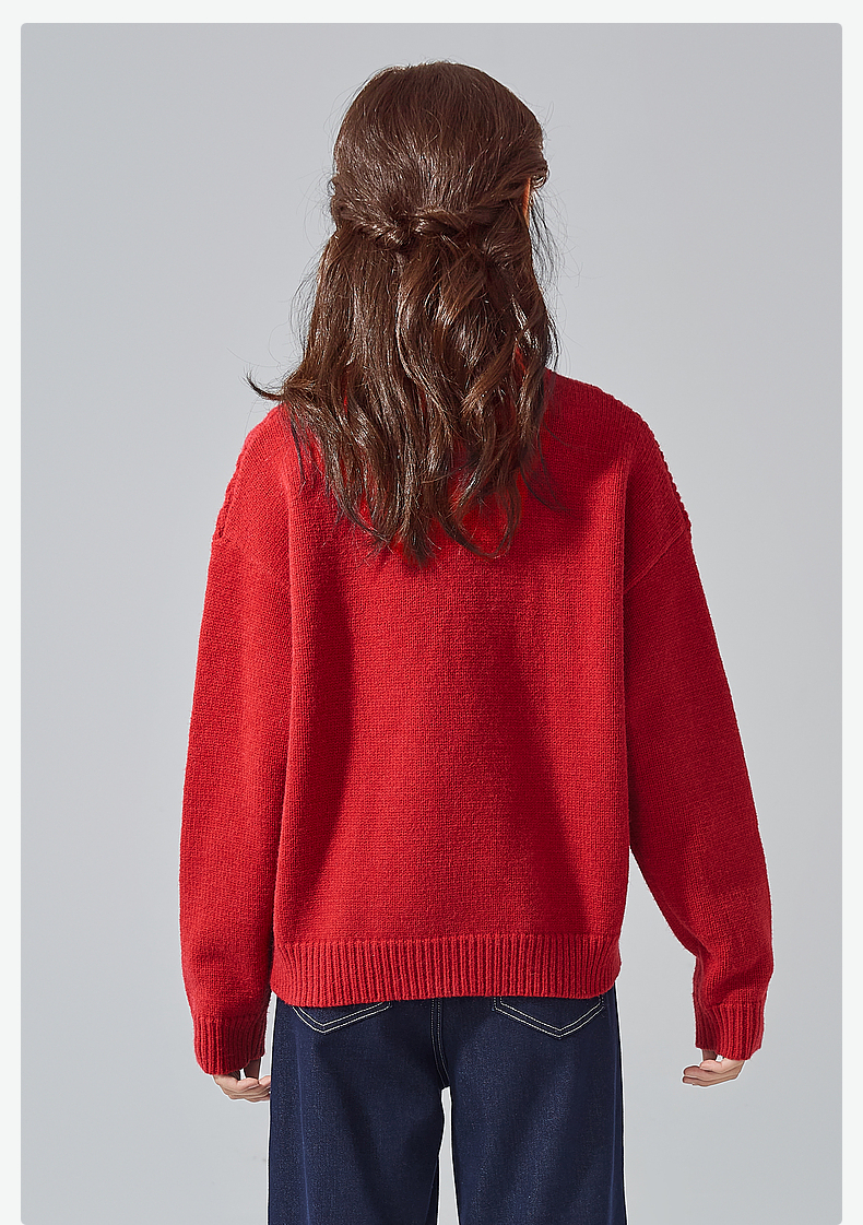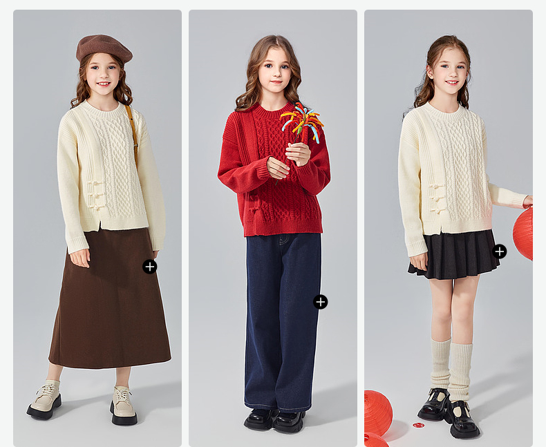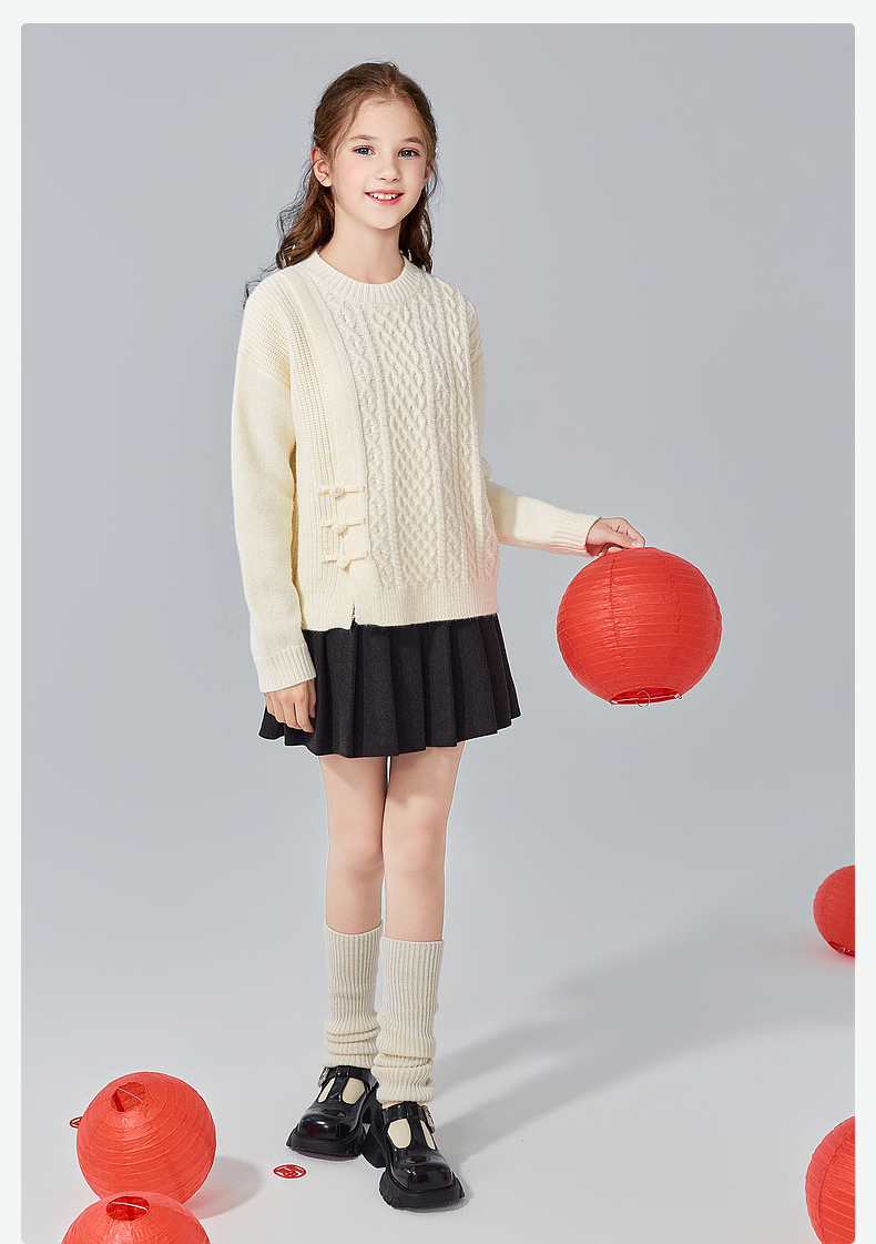 笛莎Deesha青少年女童毛衫2024冬季新年国风系套头毛衣