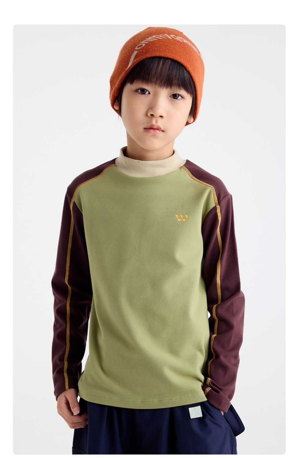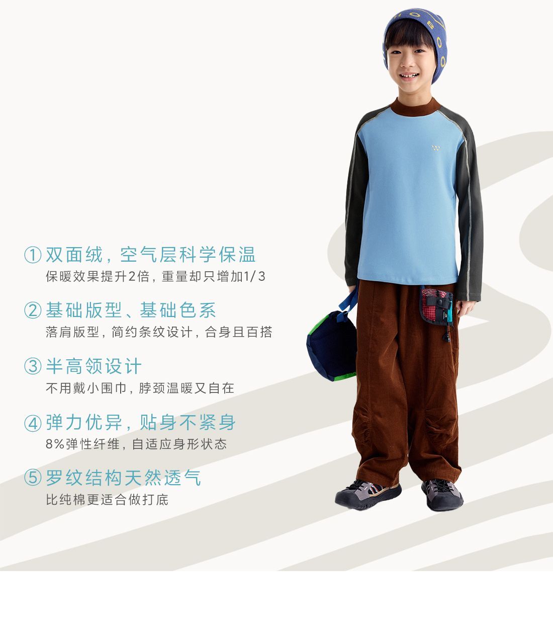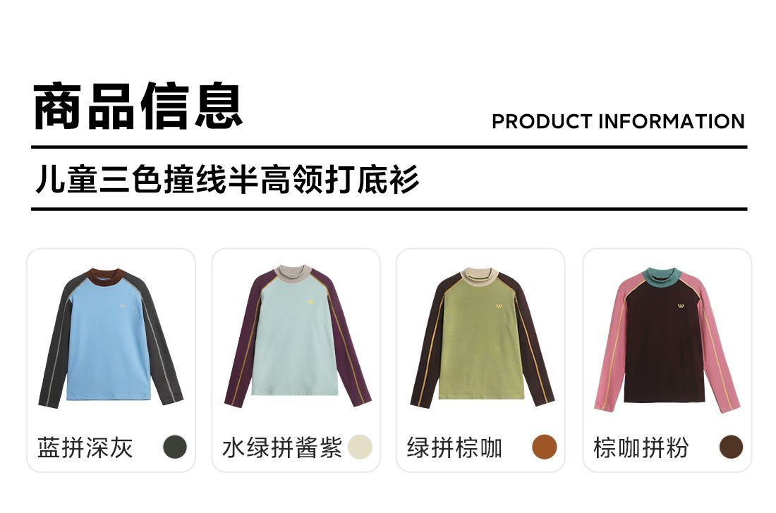 咕噜日记儿童半高领打底衫男童撞色绒衫2025秋冬女童保暖内搭上衣PDT2509
