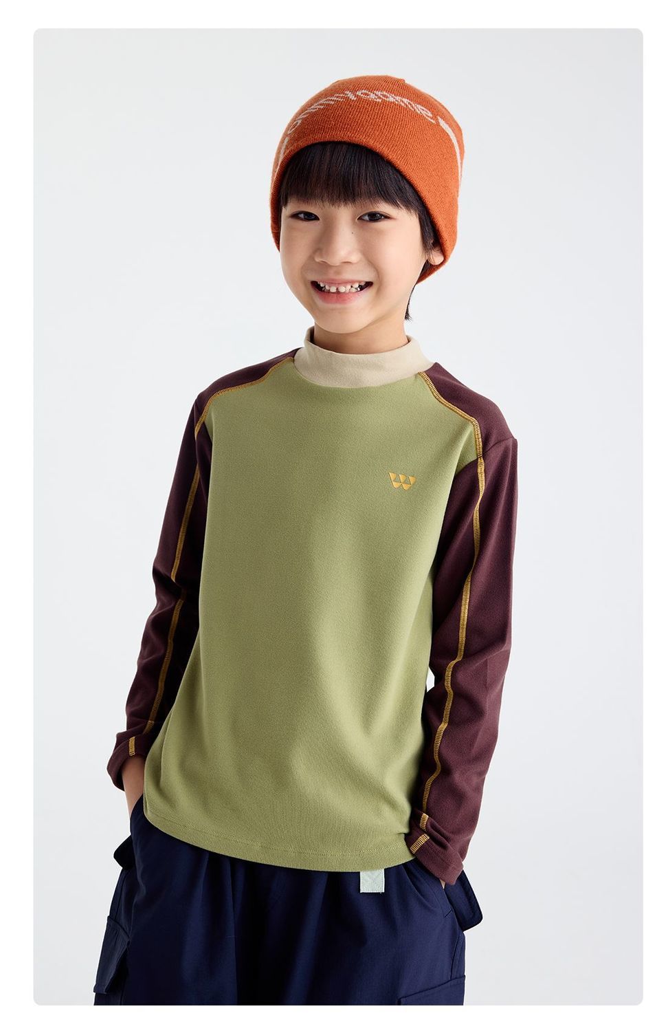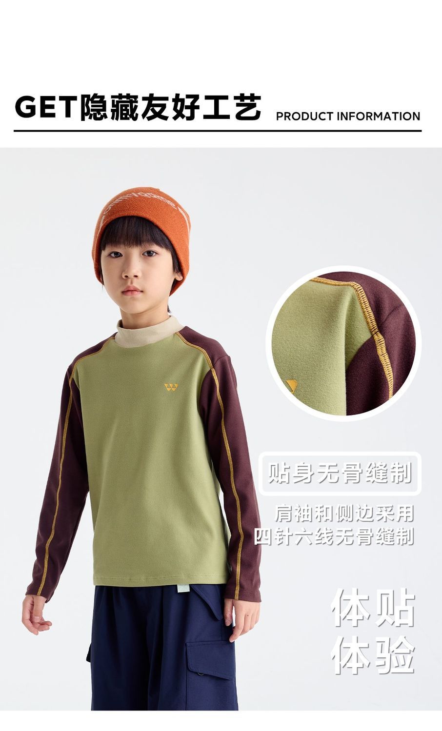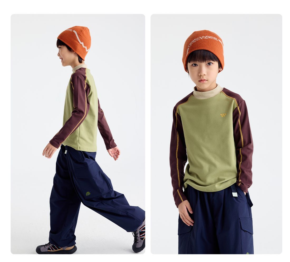 咕噜日记儿童半高领打底衫男童撞色绒衫2025秋冬女童保暖内搭上衣PDT2509