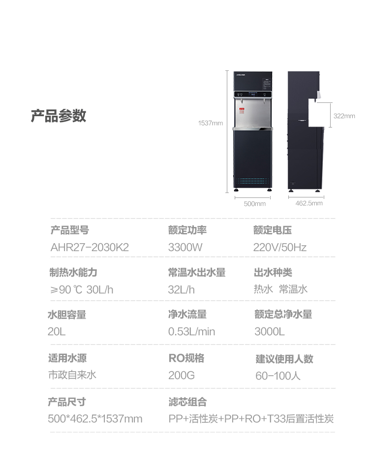 安吉尔商用全自动步进式电热开水器不锈钢烧水机 净化加热一体 商务直饮