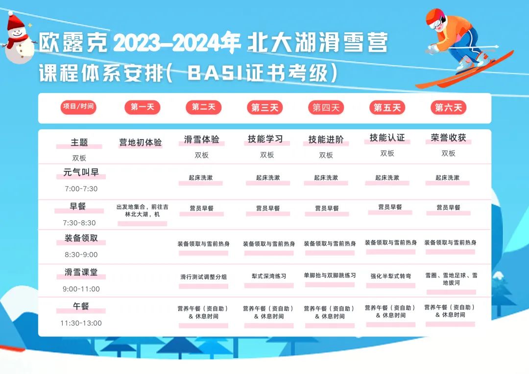 欧露克北大湖滑雪营,将采用北大湖滑雪学校的GISS教学体系,并在最后参加BASI考级。