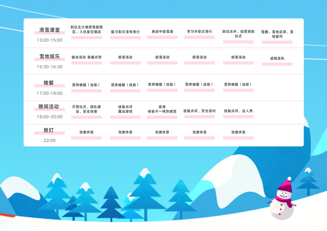 午餐、晚餐均为自助餐,会根据每期营员的情况,与雪场后勤部门沟通,准备美味健康的餐食