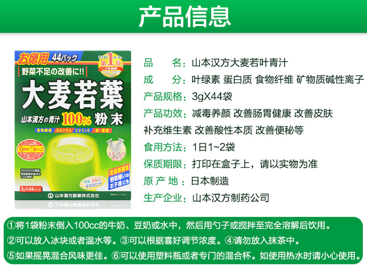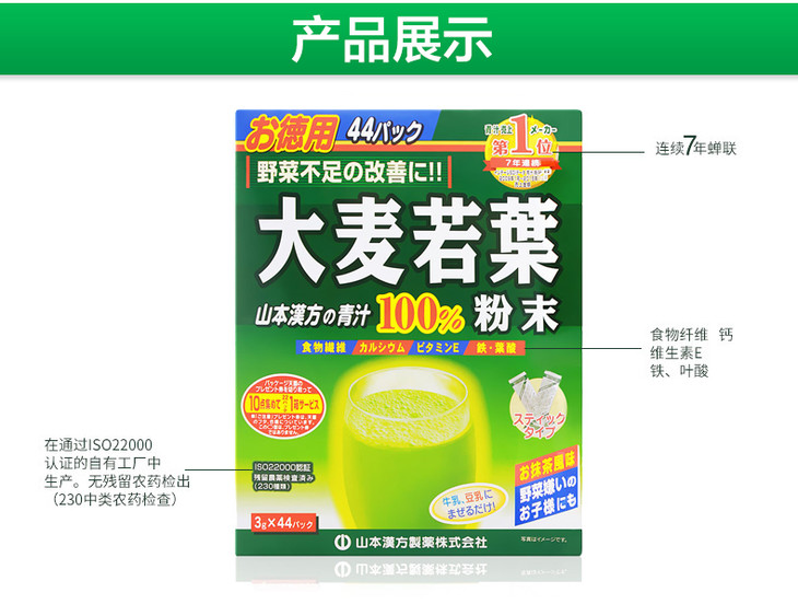 【保税仓】Kanpo-yamamoto山本汉方大麦若叶青汁44袋 商品缩略图0