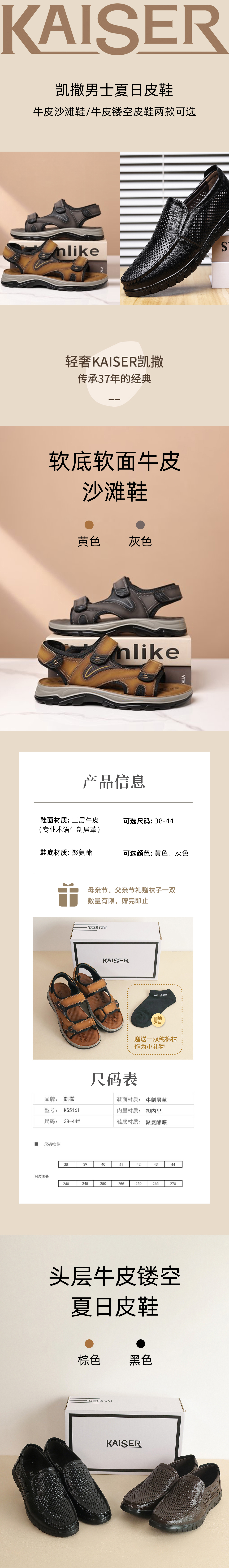 凯撒KAISER男士沙滩鞋&牛皮洞洞皮鞋,春夏透气款 | 休闲/商务2款可选(买沙滩鞋送棉袜)