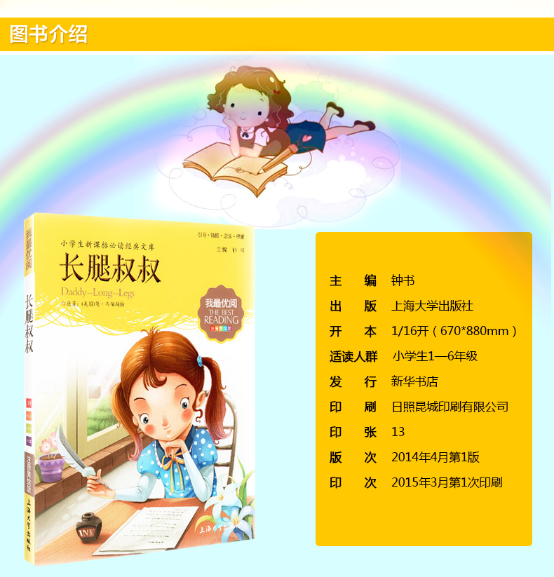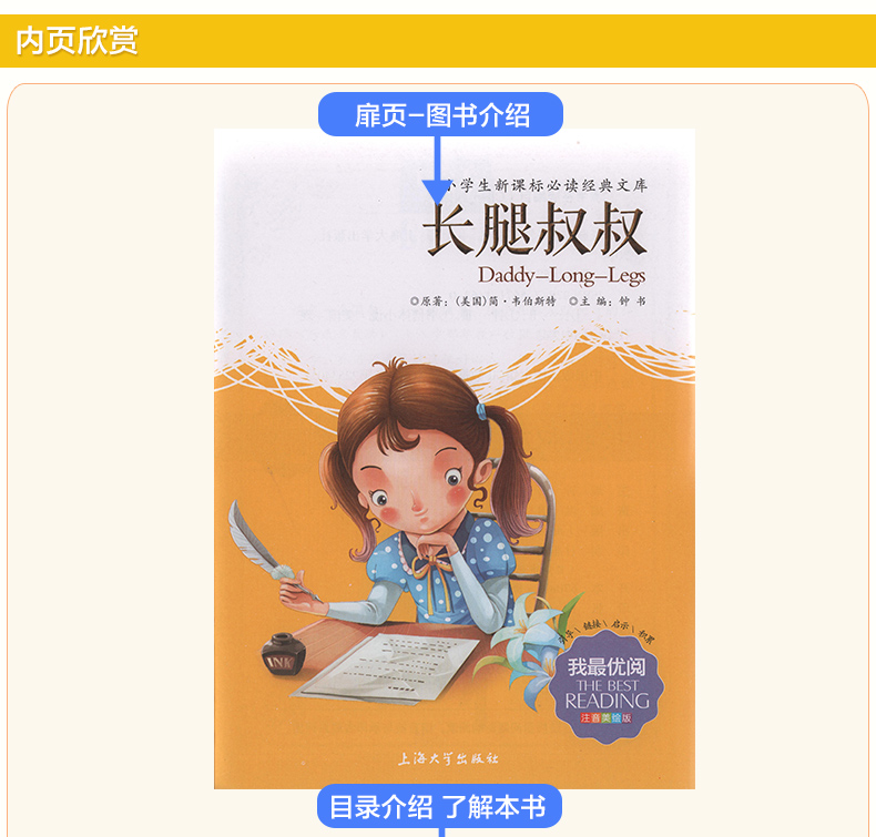 1-3年级适用 注音美绘版-长腿叔叔 钟书正版少儿读物我优阅系列拼音彩图版长腿叔叔 儿童文学课外读物小学生作文阅读写作能力