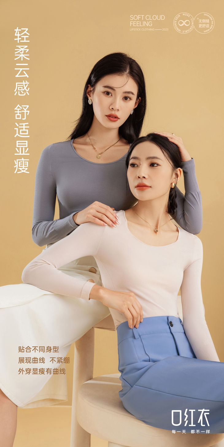 柔软亲肤感,24小时润肤抗干燥 打底衫的面料经过特殊软化 触感软fufu,亲肤性很Nice 上身舒服到不行! 这个无论是面料还是做工! 都可以说的上是前排了!