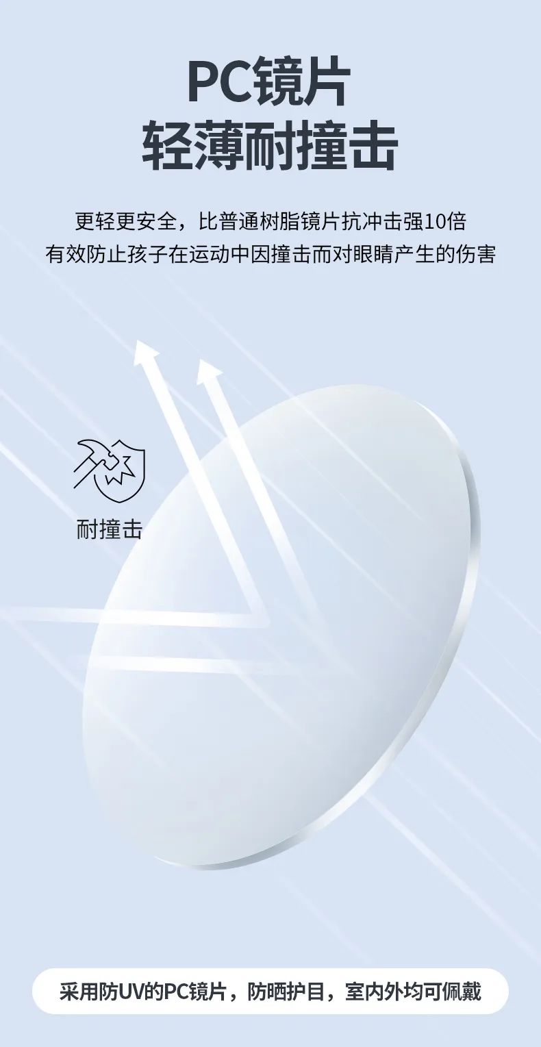 2、PC镜片 虽轻薄但耐撞击