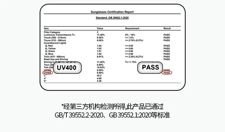 1、UV400 防护认证