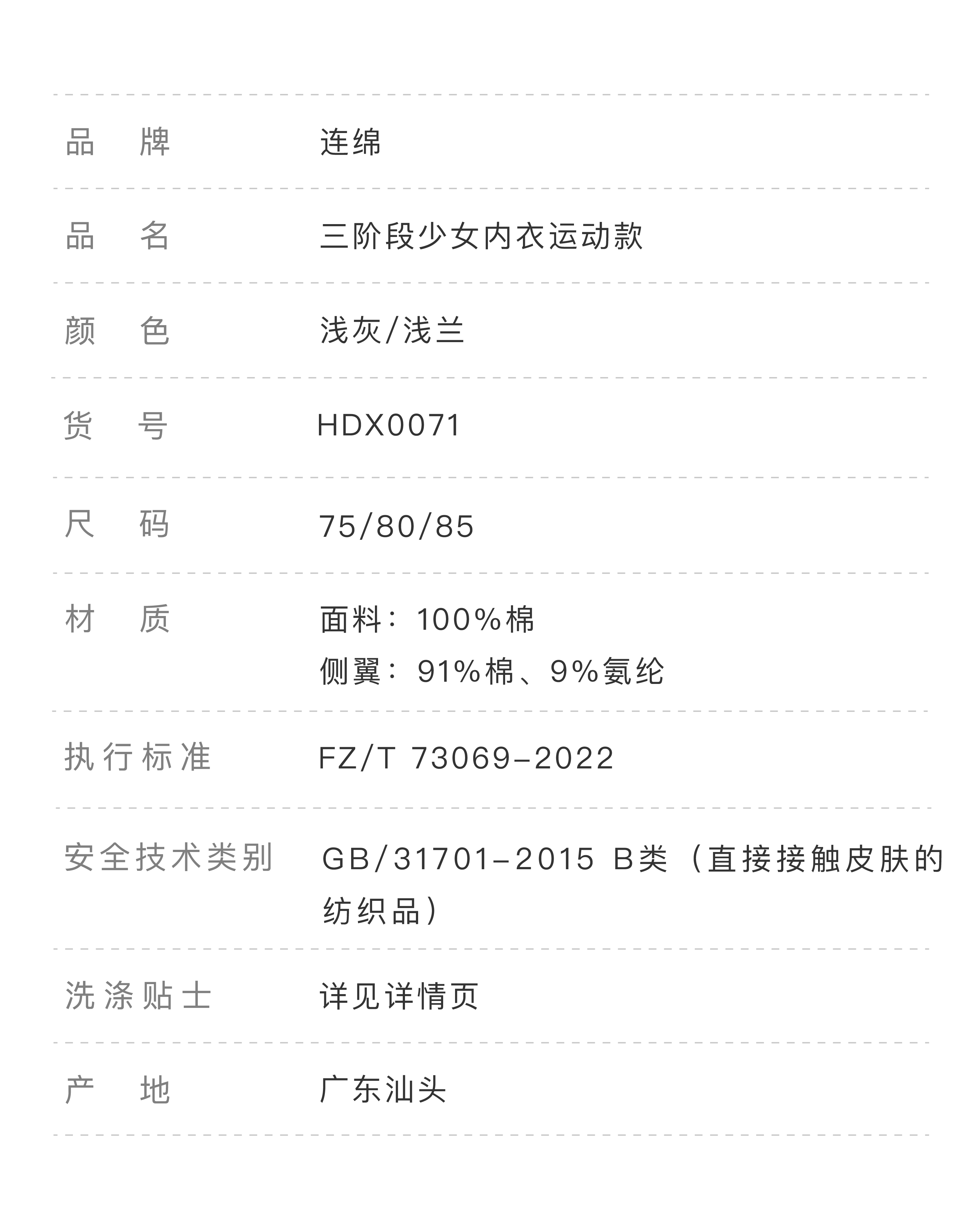 连绵·三阶段少女内衣运动款 HEX0071