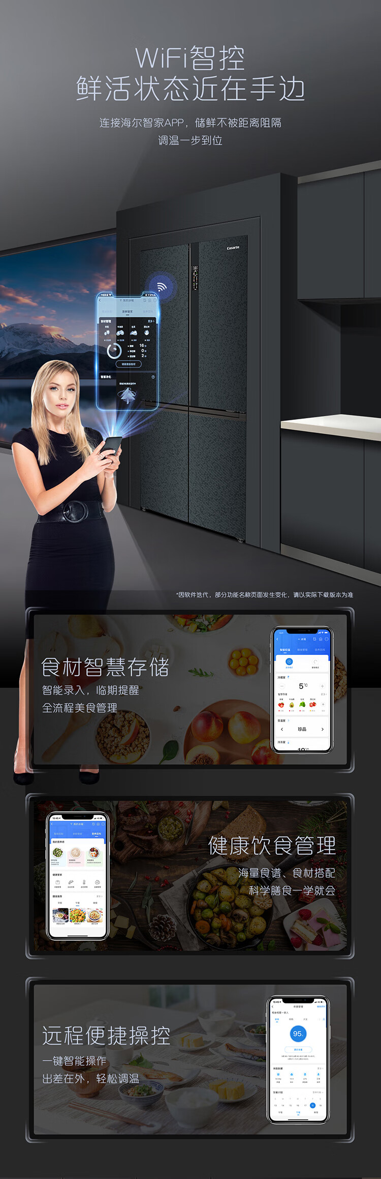 卡萨帝(Casarte)609升零距离自由嵌入式冰箱十字对开门自动制冰风冷无霜多门冰箱 BCD-609WLCTDA4ARU1幻影黛