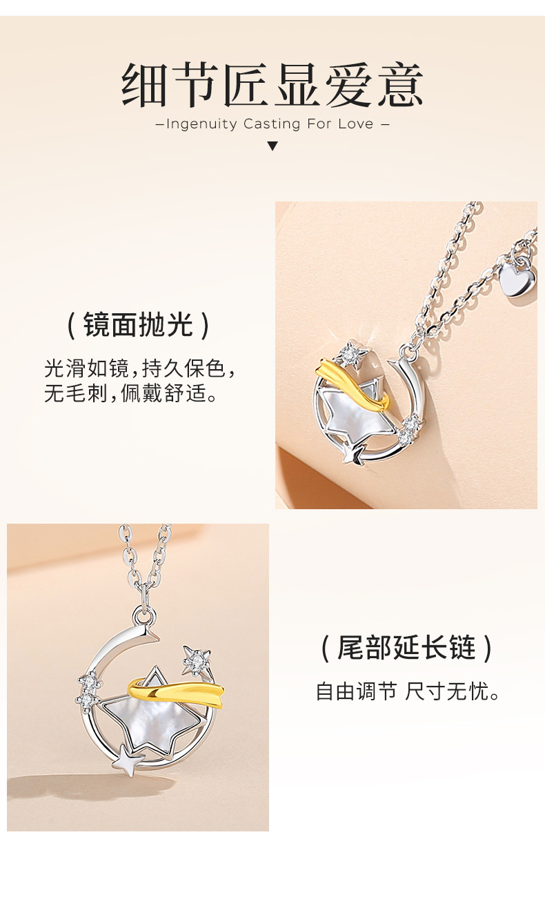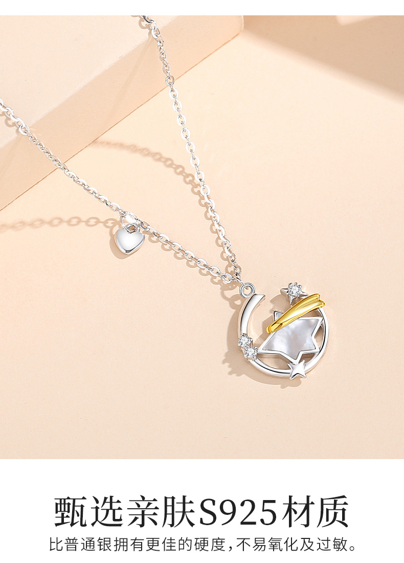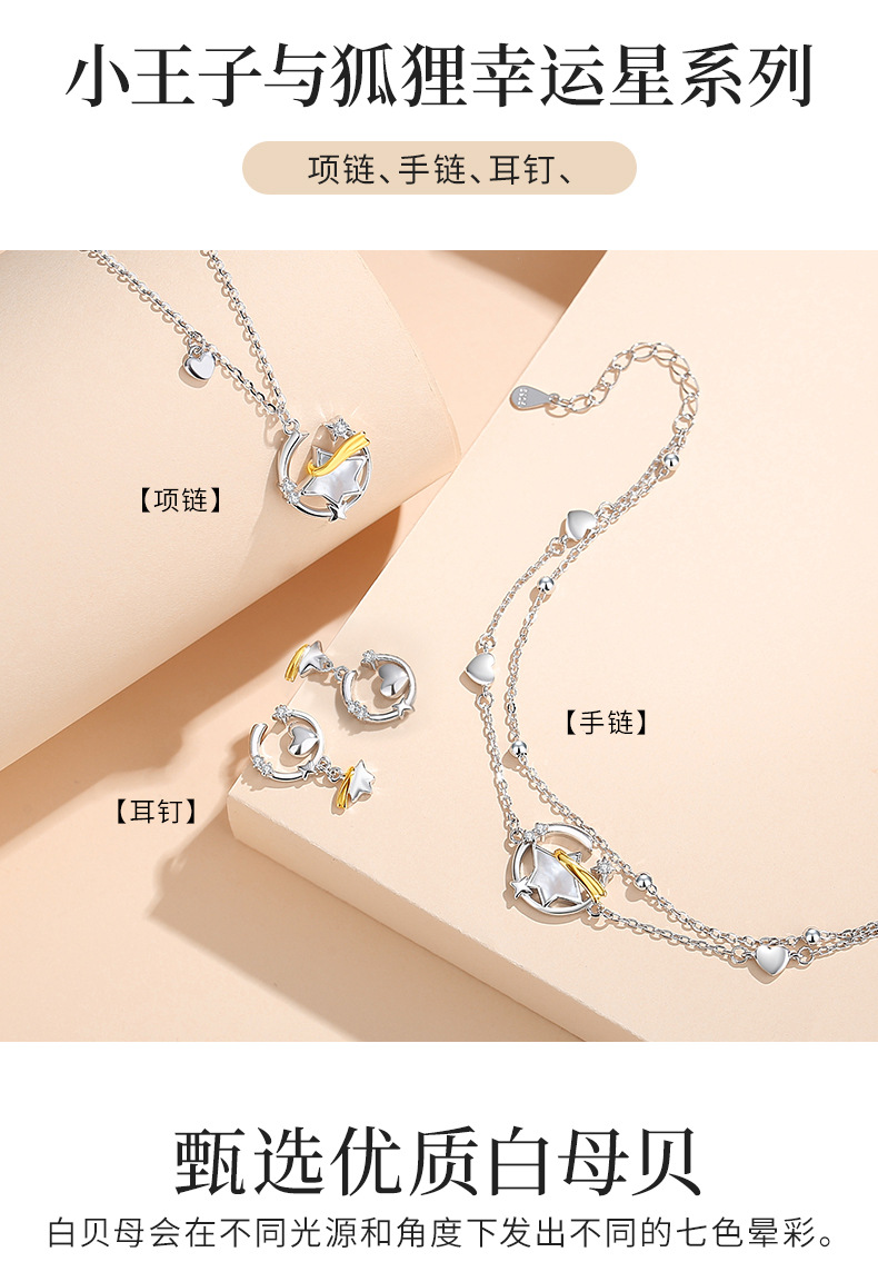 卡蒂罗/KADER 小王子小狐狸的幸运星 小王子与玫瑰 轻奢小众锁骨链 梦幻星月吊坠 甜美可爱 925银 圣诞节