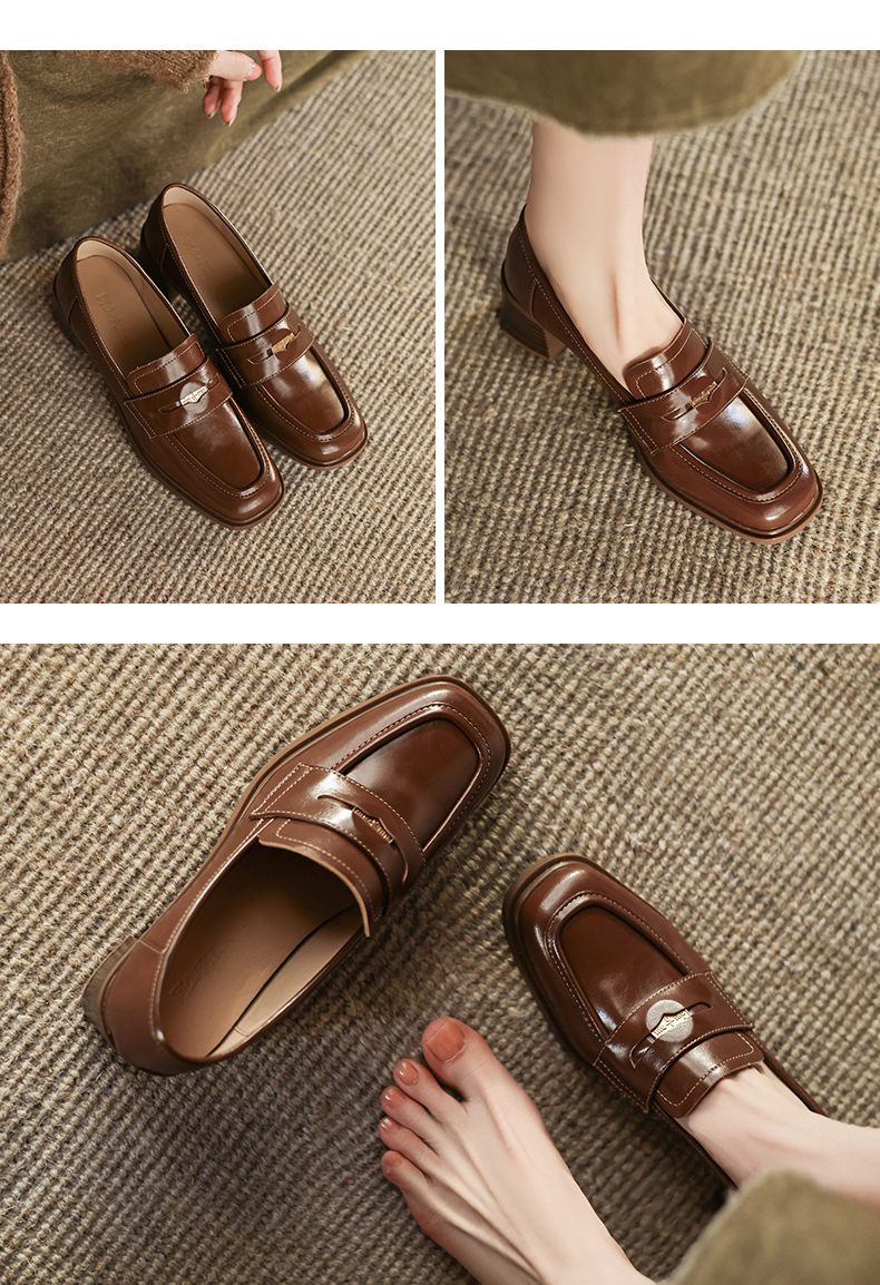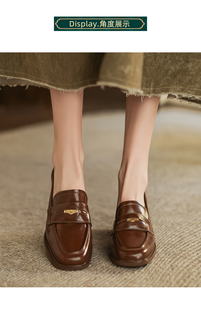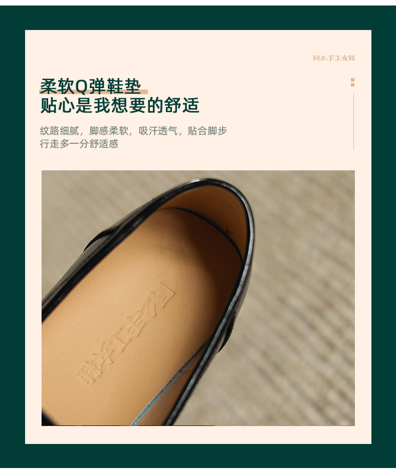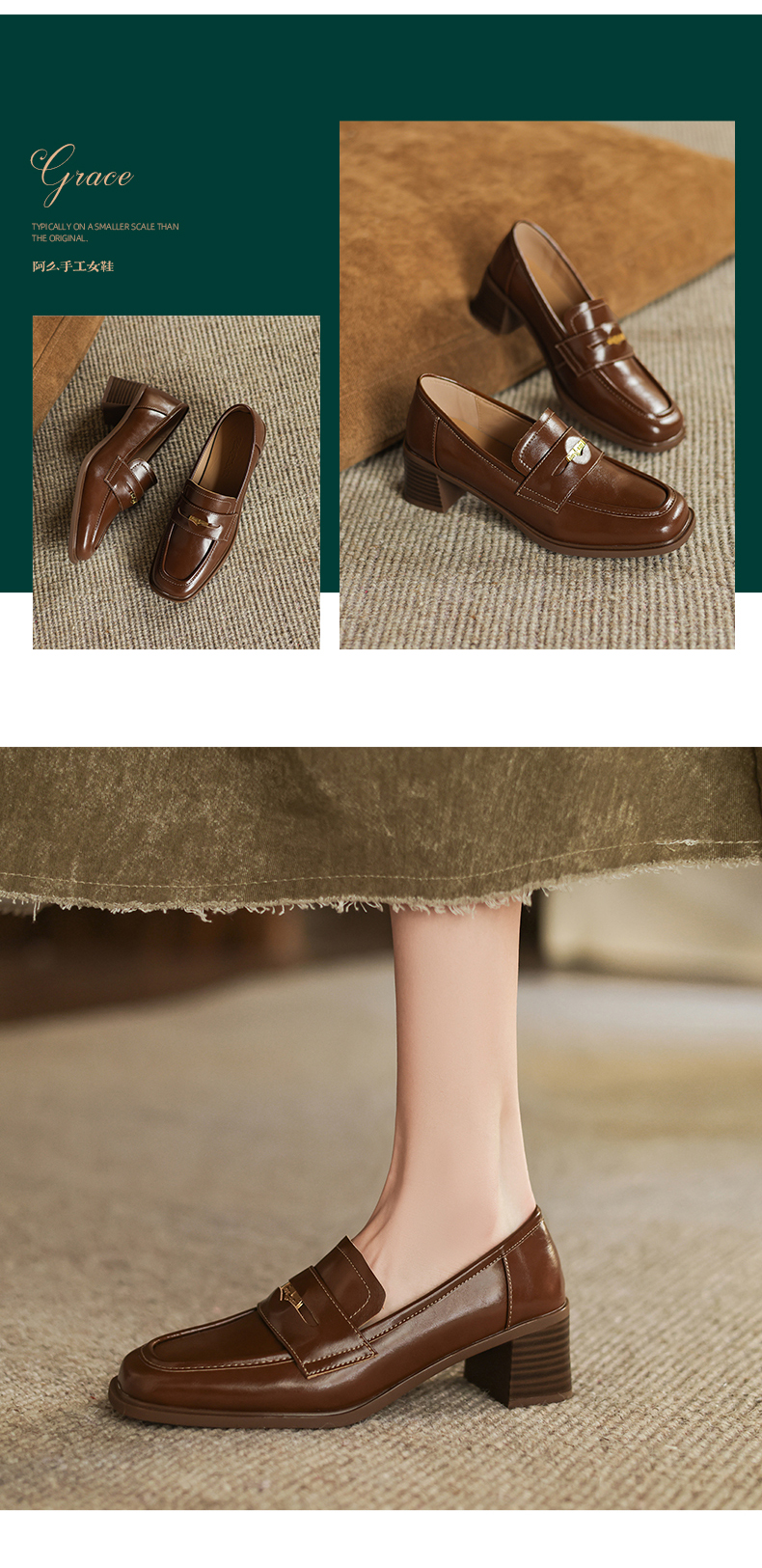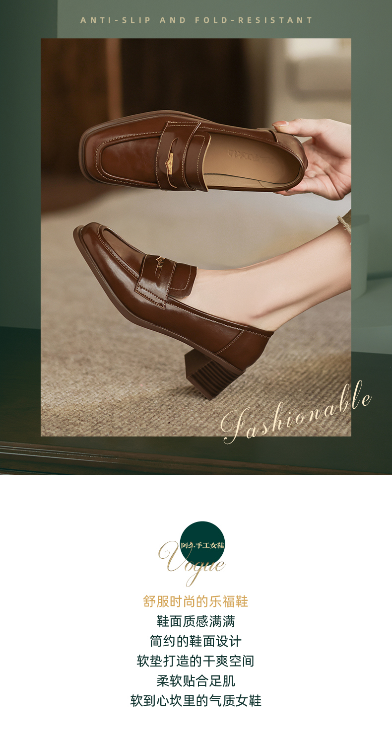 阿么手工女鞋英伦风深口乐福鞋真皮百搭2025新款通勤方头单鞋5CM