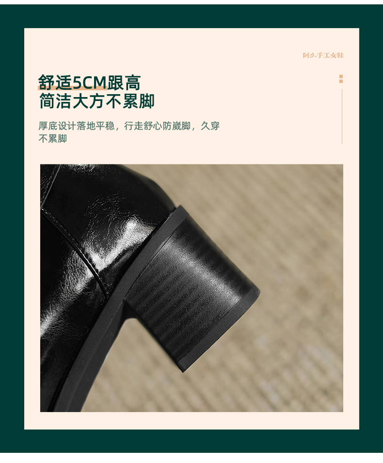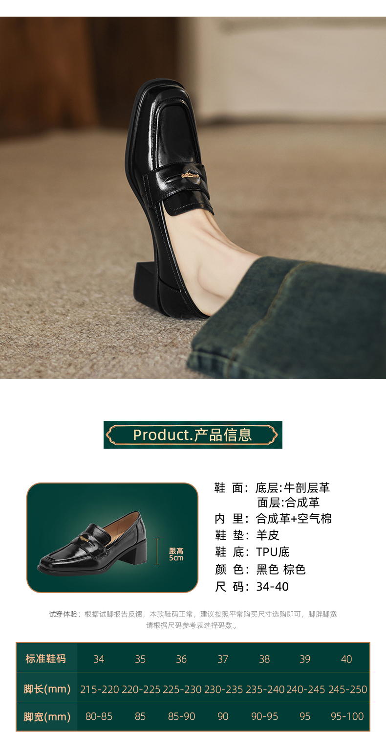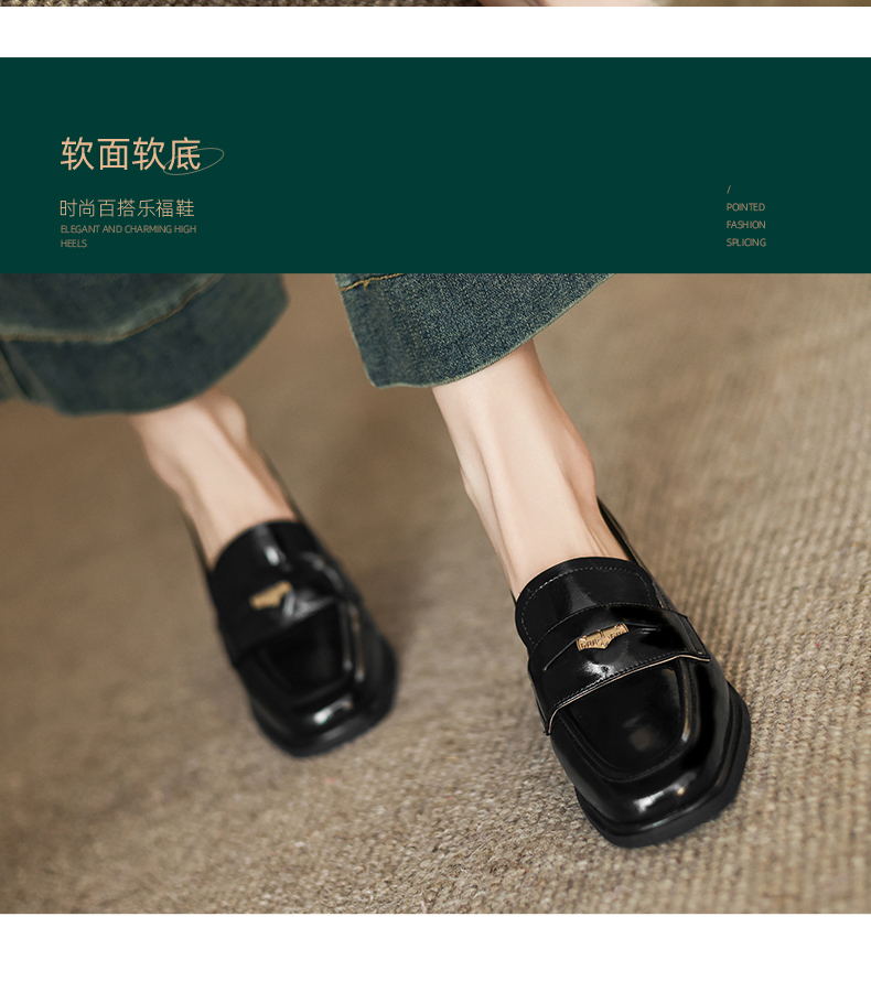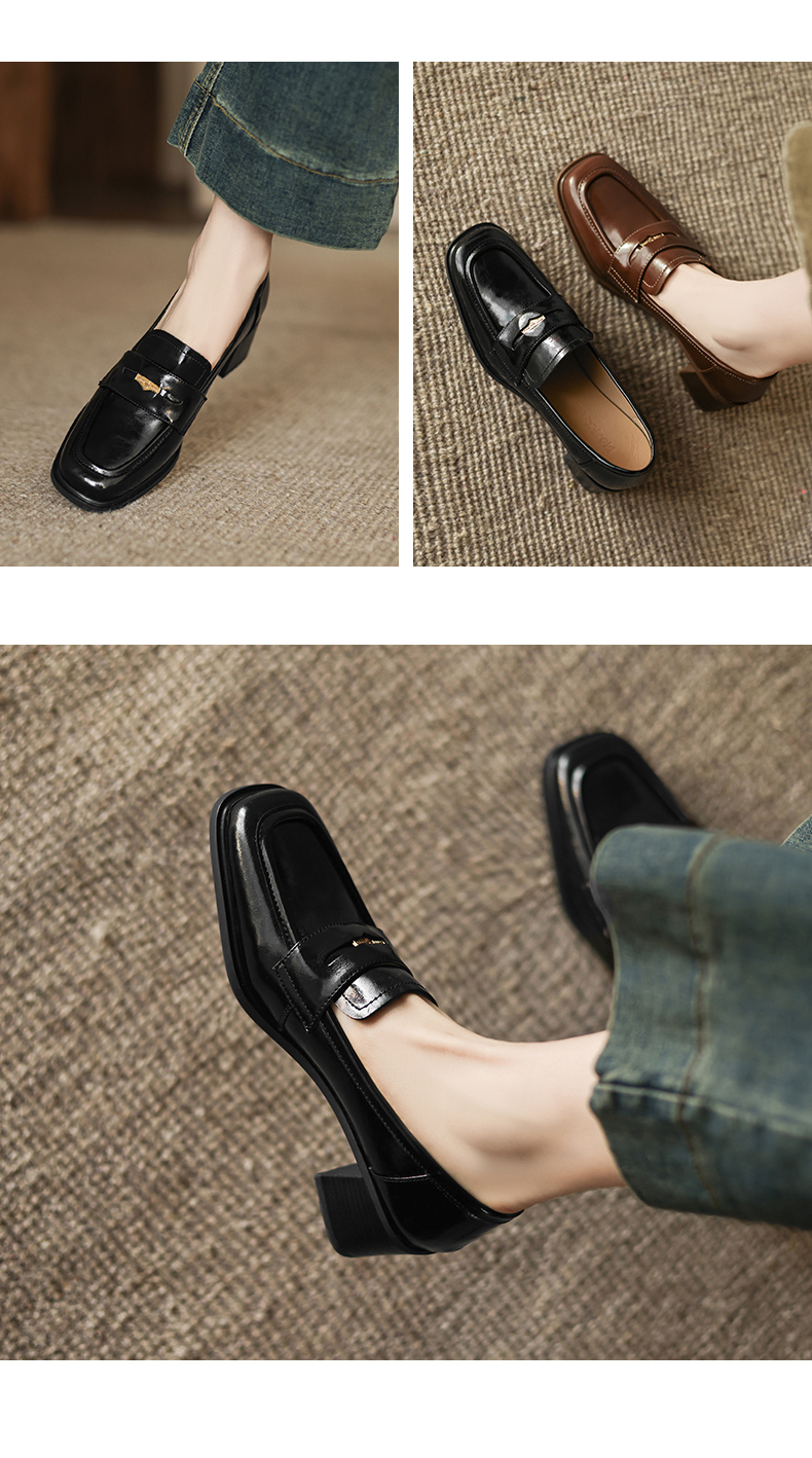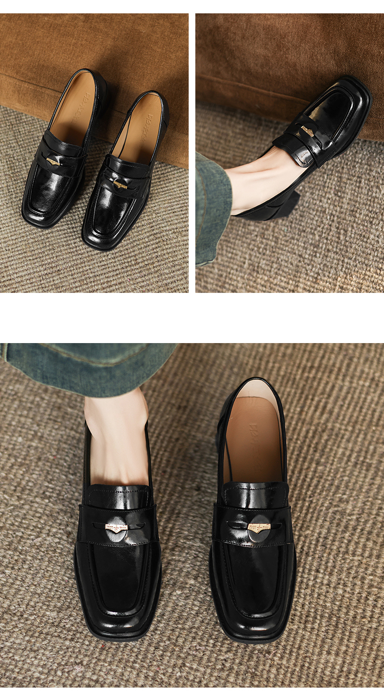 阿么手工女鞋英伦风深口乐福鞋真皮百搭2025新款通勤方头单鞋5CM