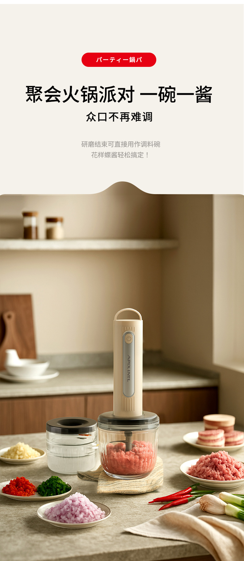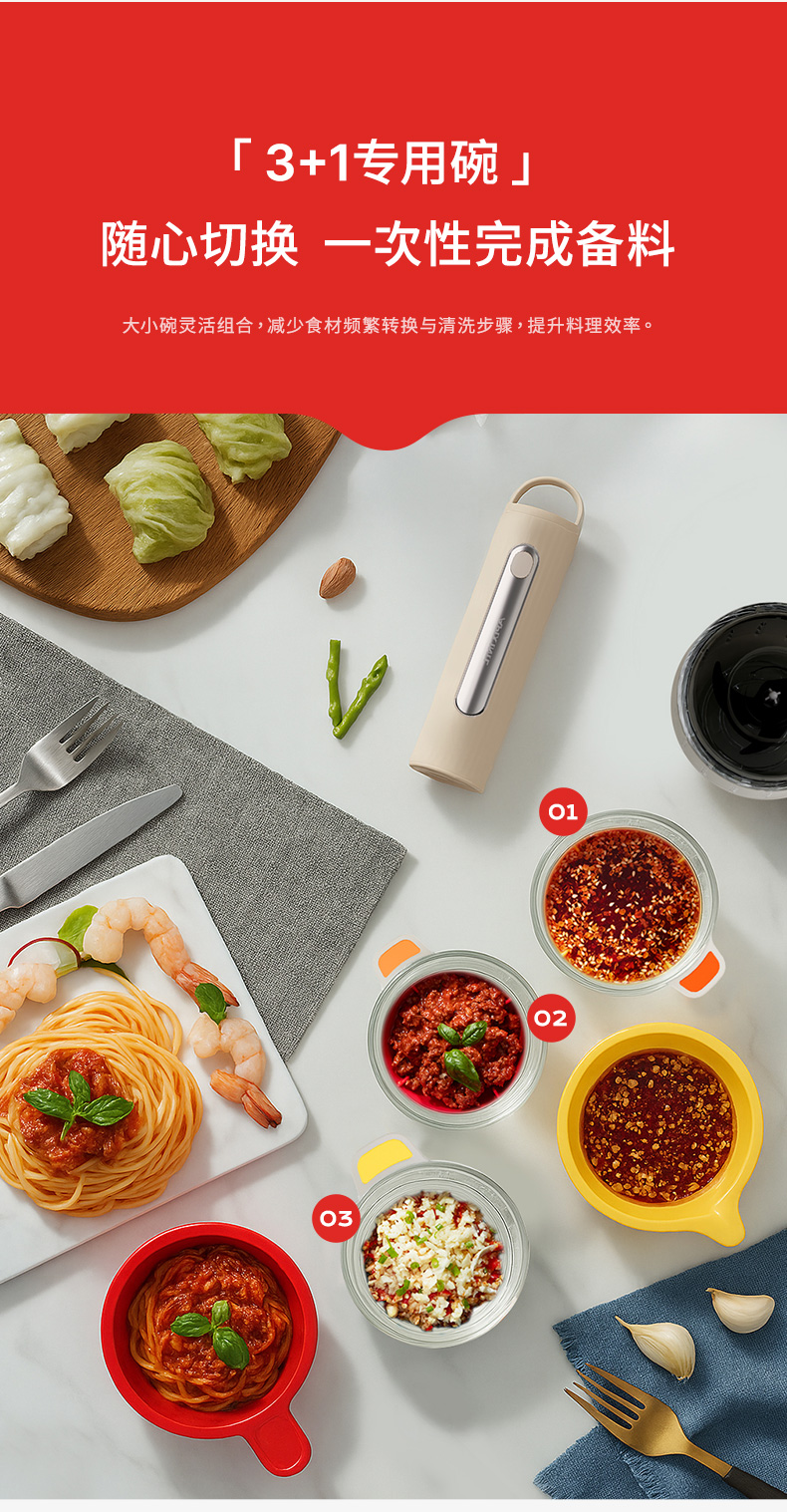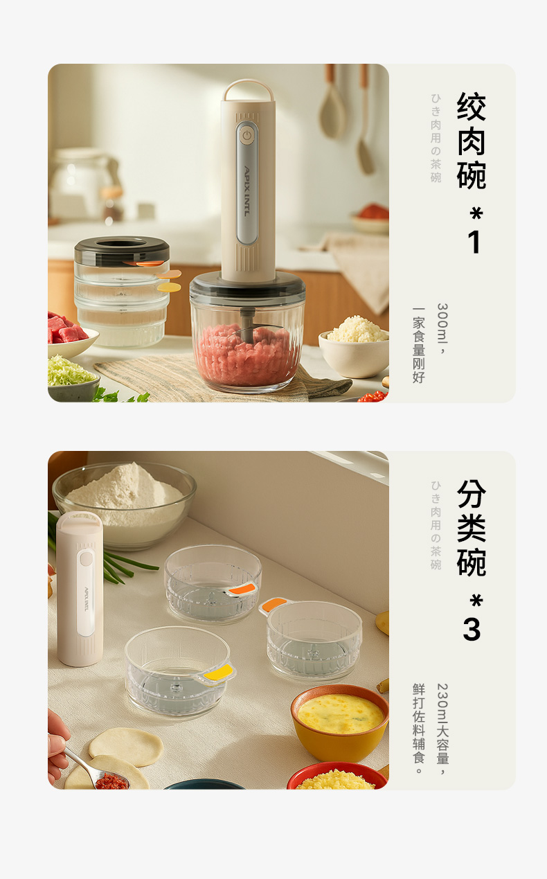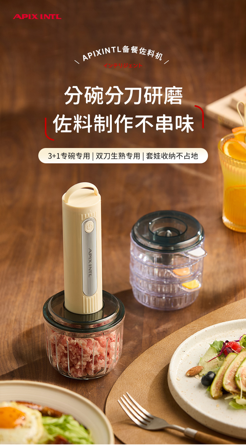 【3+1专碗专用】安本素 佐料机 一机多用 馅料/辅食/蘸料/干碟 随心切换 双刀生熟专用 分碗分到研磨不串味 套娃收纳不占地