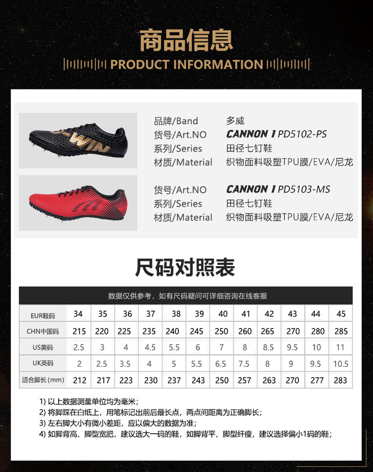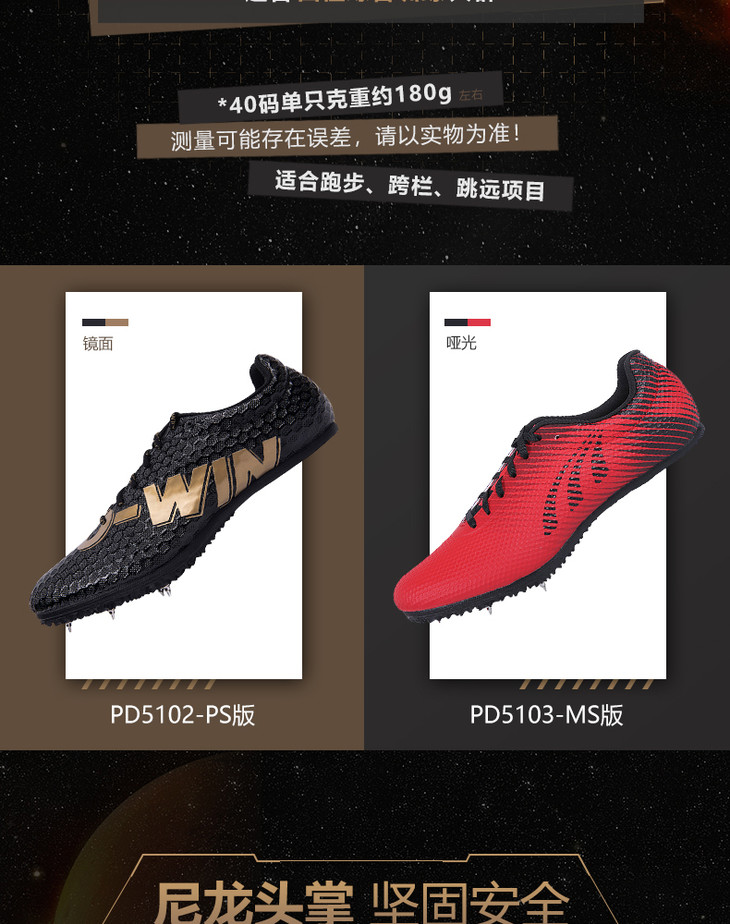 多威钉鞋新款田径短跑男女体考四项体育生训练鞋防滑小钢炮运动鞋PD5102/03