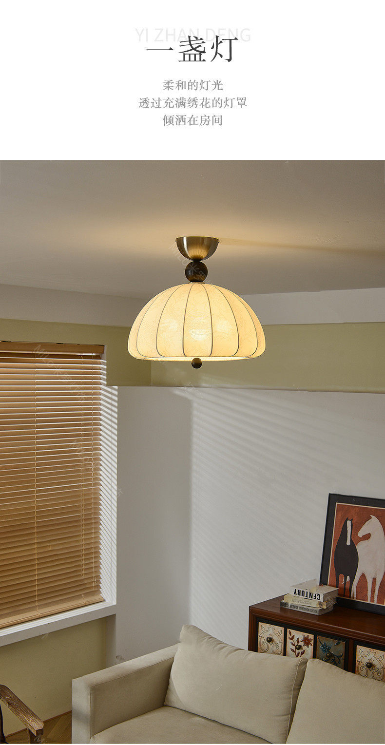 客厅复古风中古民宿吸顶灯美式花纹卧室灯布艺衣帽间灯具法式南洋 商品图1