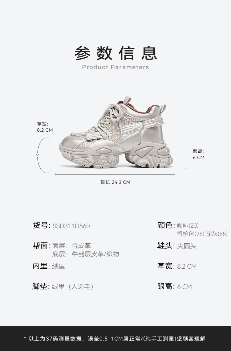 【绒里可选】星期六都市潮流厚底老爹鞋SSD3112560/SSD311D560
