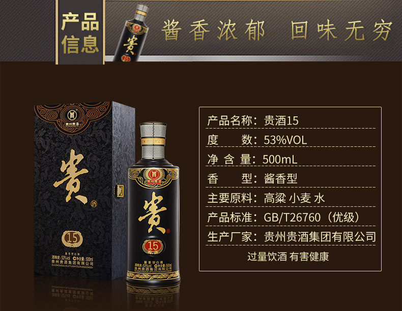 贵州贵酒 贵15 53度 500ml 6瓶/箱 下单前请认真阅读详情页【20220118发货】