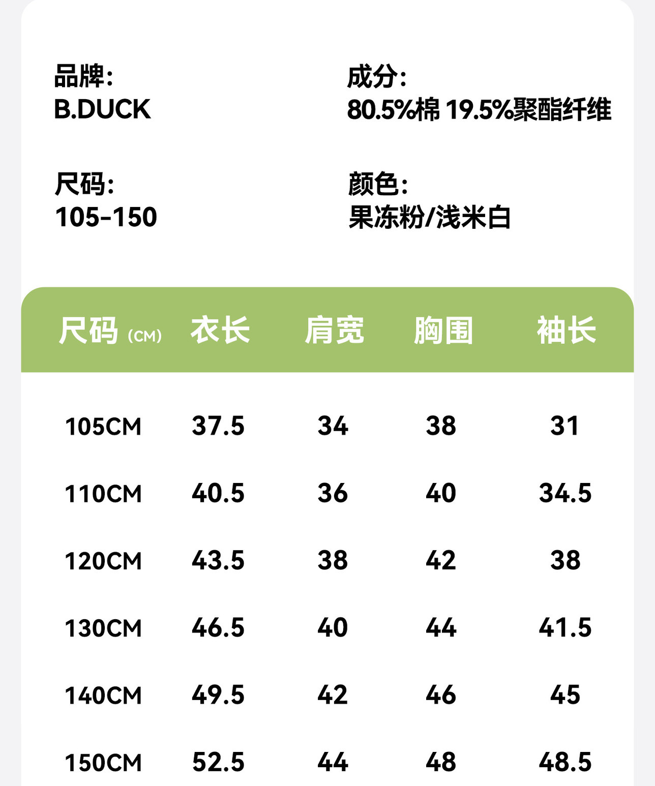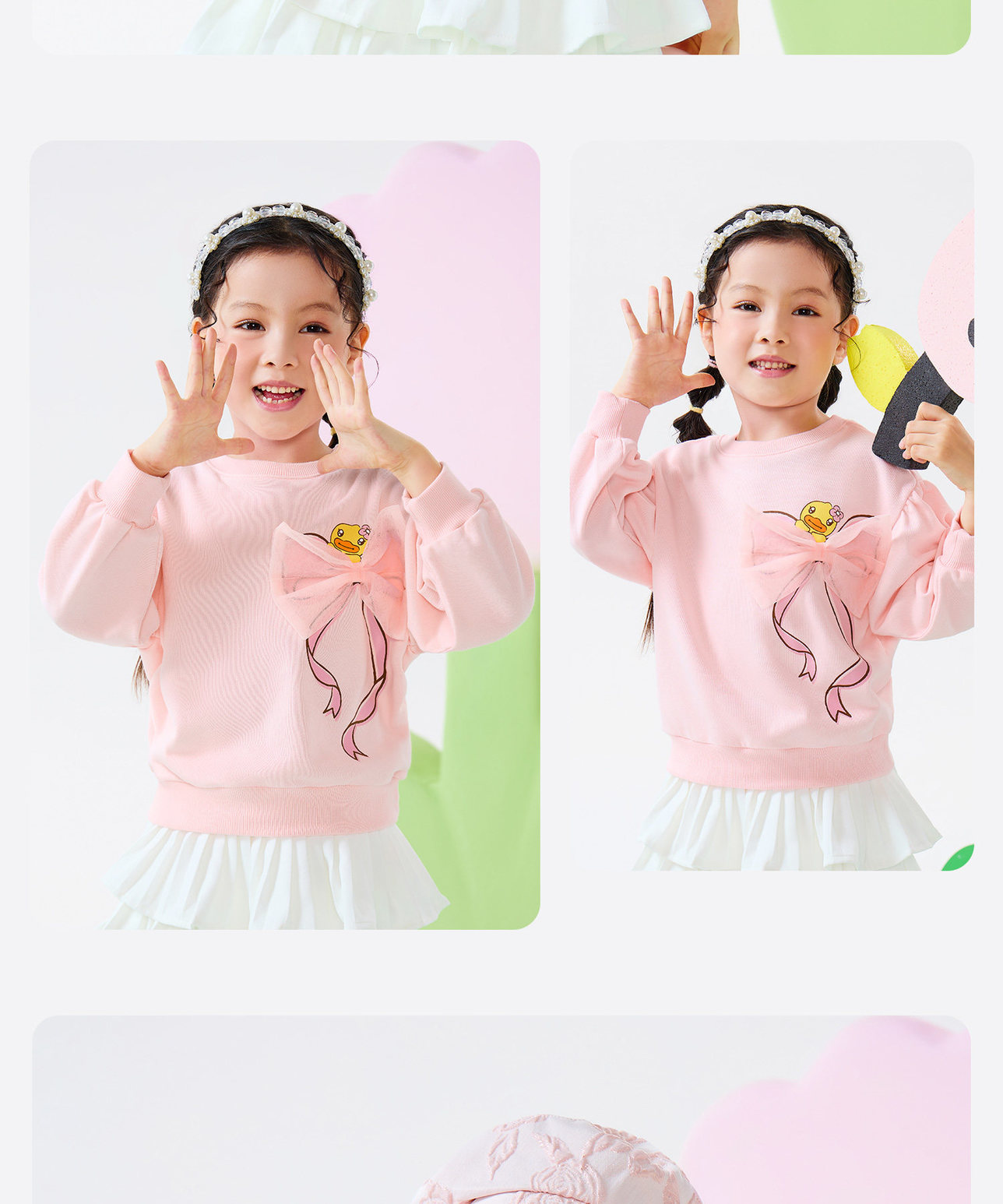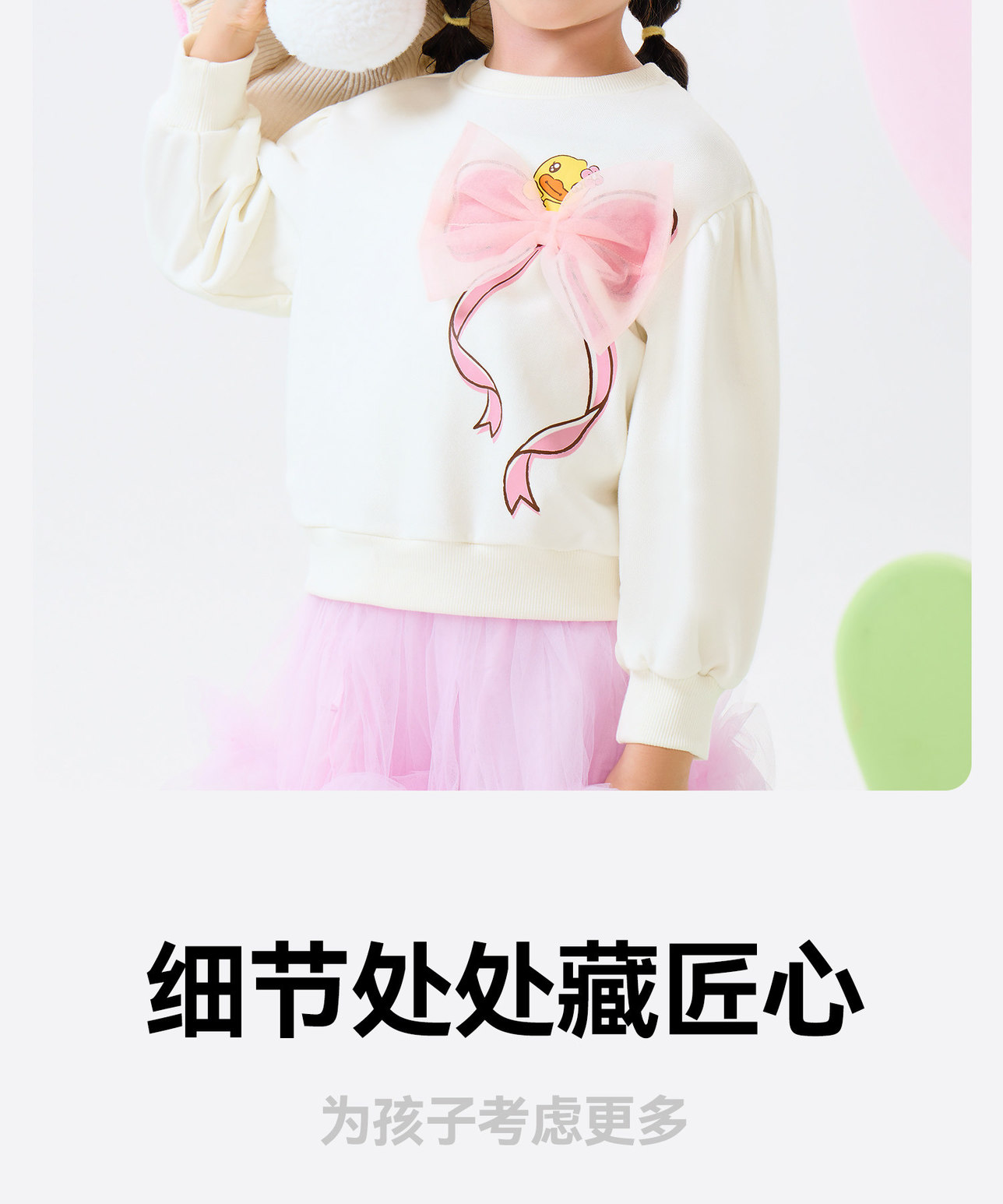 bduck小黄鸭童装春秋女童卫衣儿童上衣甜美小女孩套头衫105-150 FF1608001