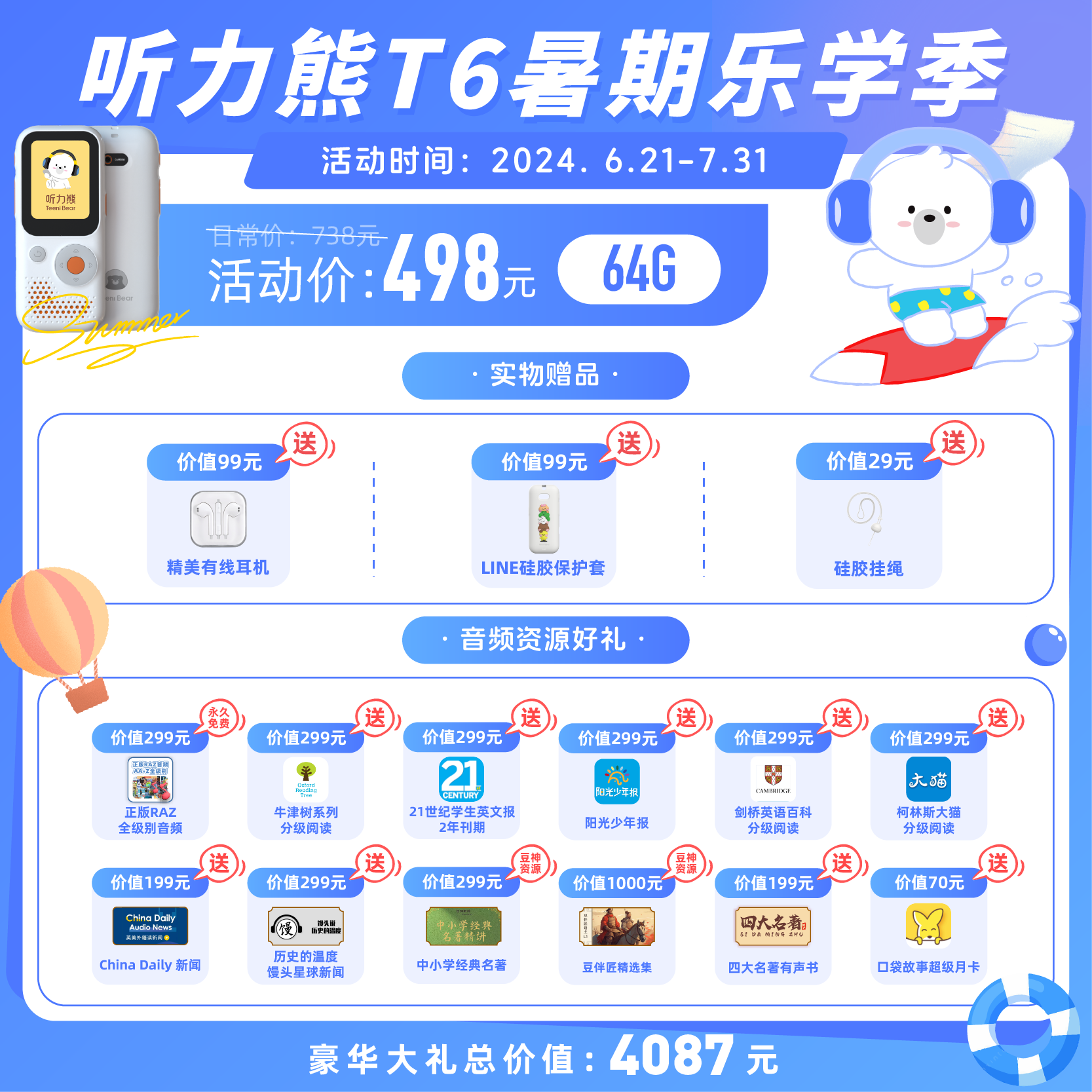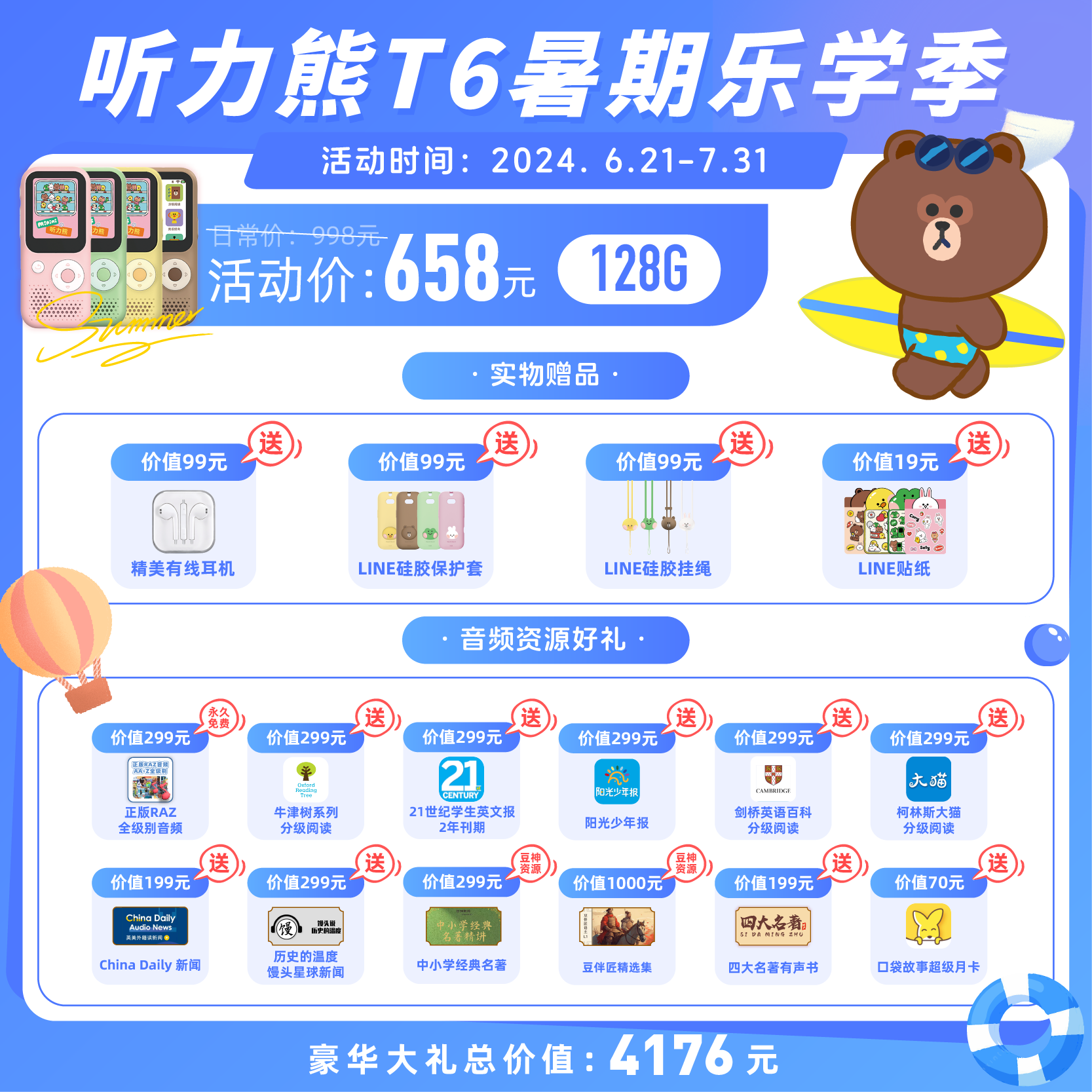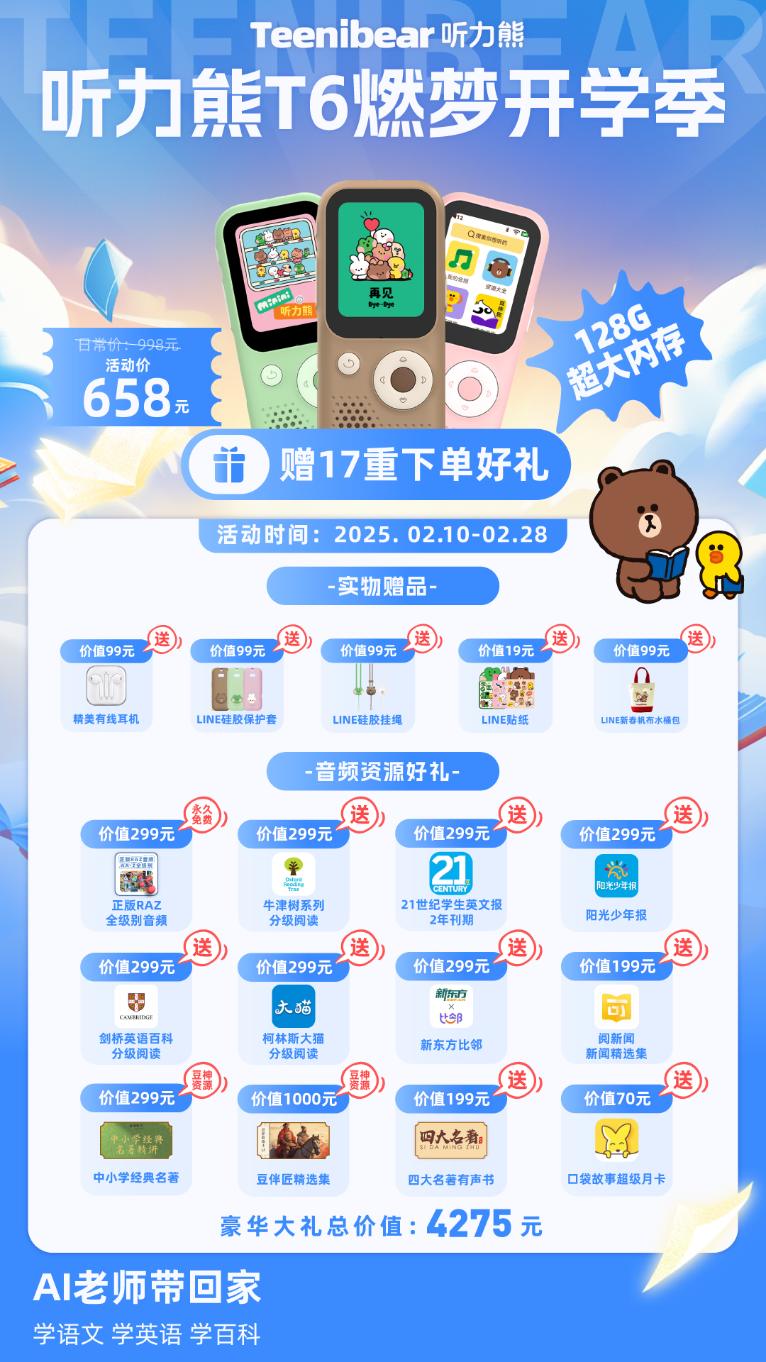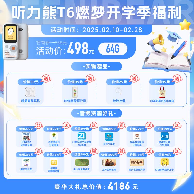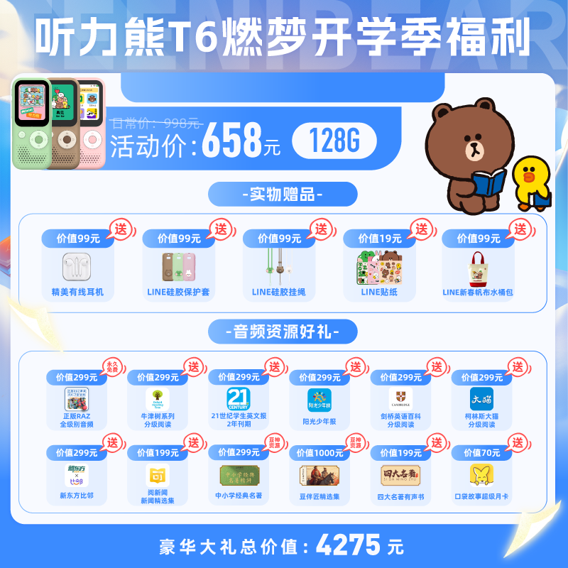 好学多听力熊T6英语学习机 X 豆神大语文 震撼上市 实体赠品:有线耳机99元,line全家福硅胶套99元,硅胶挂绳:29元 (line款配赠联名款贴纸)